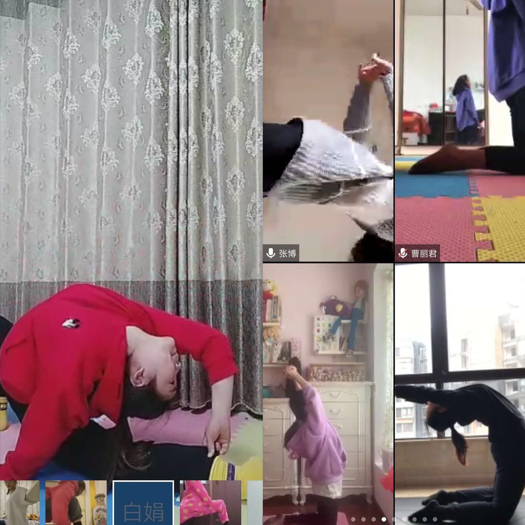 在停课不停学的疫情特殊时期,如何保证学生身体软开度、基本体力、肌肉力量等舞蹈课程要求的身体素质,孙晓丹老师精心设计、煞费苦心。在利用手机运动软件规定学生日常自行训练强度并要求每周周五上传完成截图的同时,督促学生控制体重,利用直播上课软件分年级直播教学,带领学生进行软开度训练以及肌肉力量恢复训练。