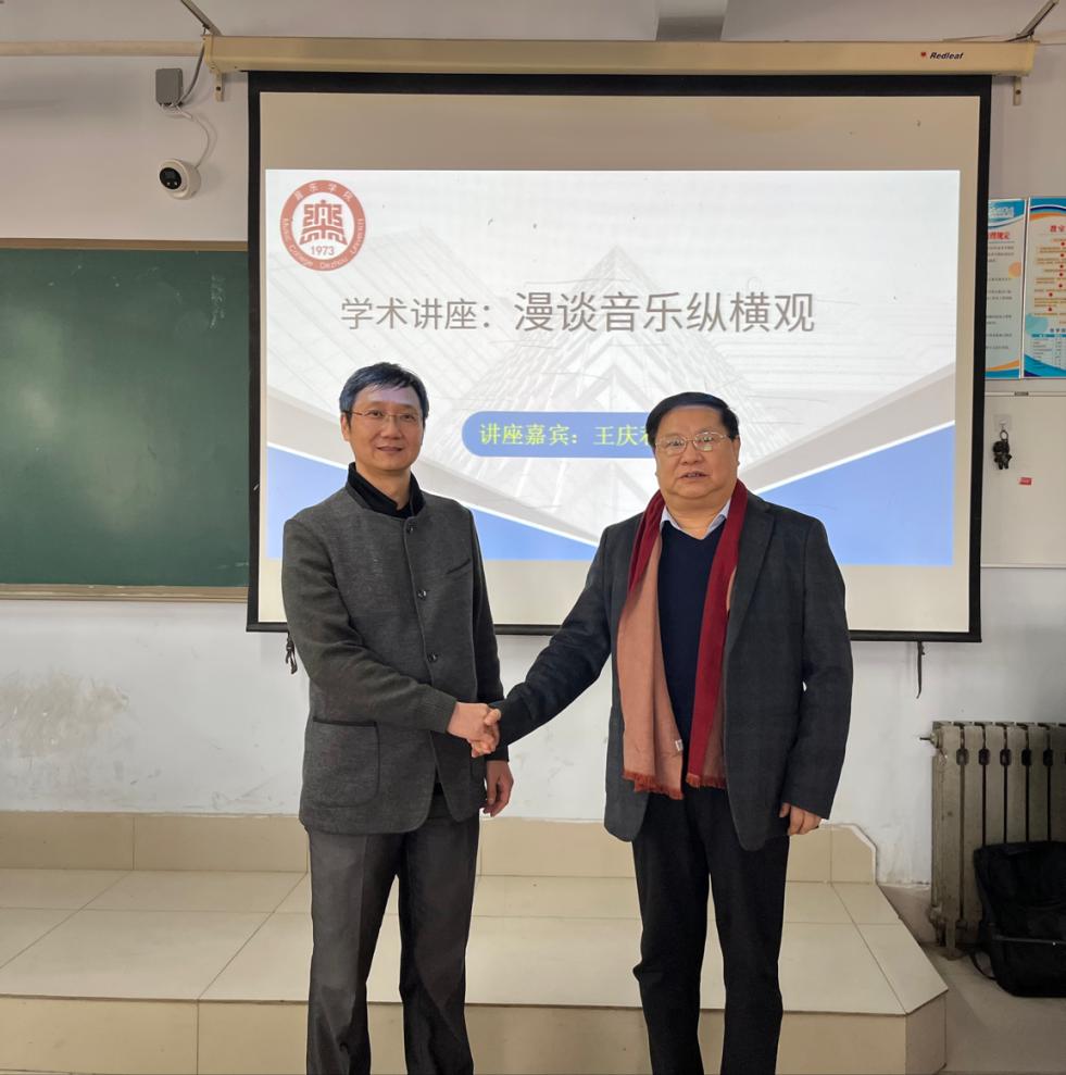 3月29日下午,太阳成集团tyc151cc特邀河北经贸大学艺术学院王庆利教授举办聘任仪式暨学术讲座。本次会议在一楼会议室开展聘任仪式,太阳集团副校长李永平以及太阳成集团tyc151cc全体教师参加本次会议。随后在二楼多媒体教室开展“漫谈音乐纵横观”学术专题讲座。太阳成集团tyc151cc教师代表、合唱团学生参与此次讲座。