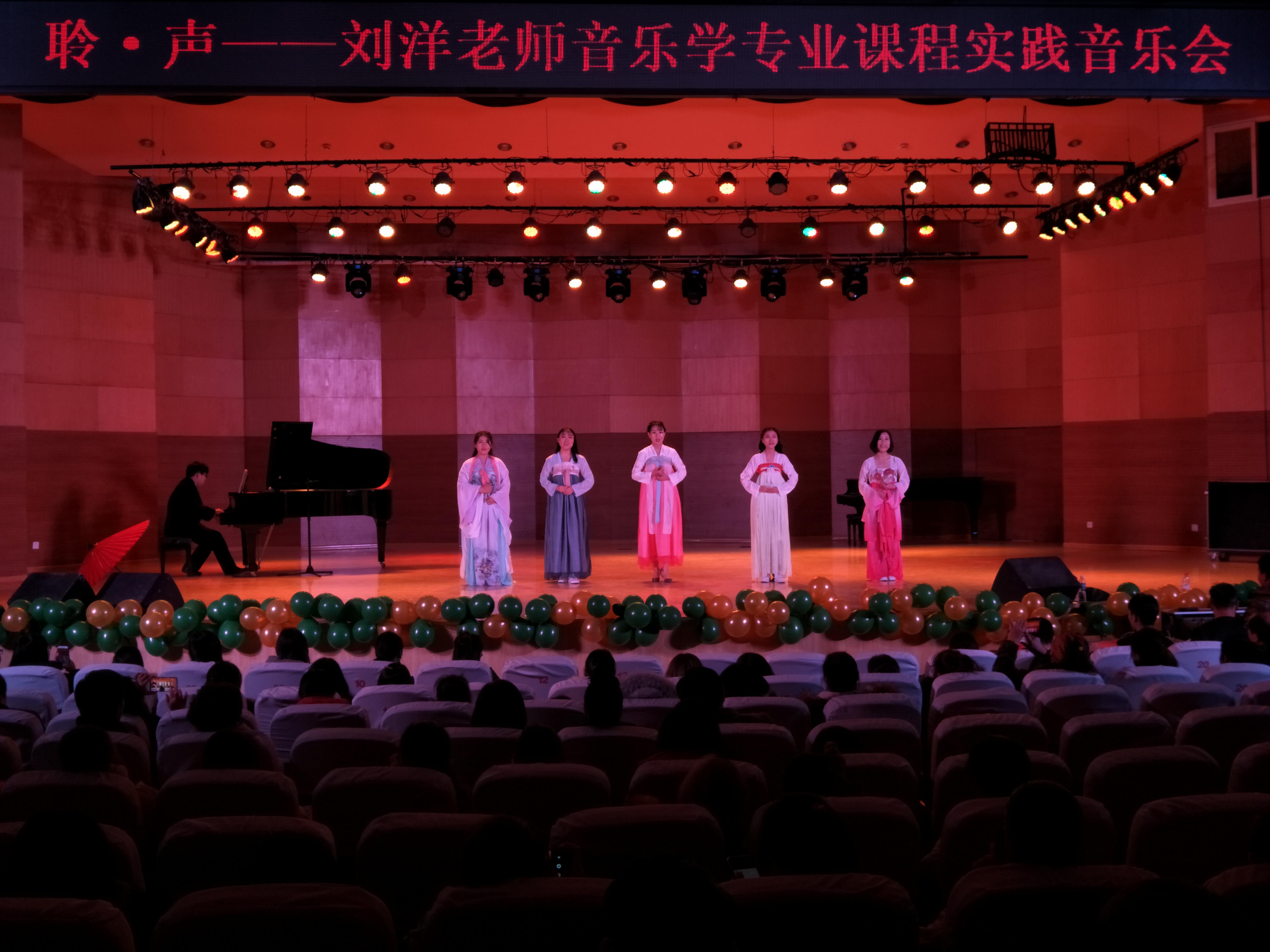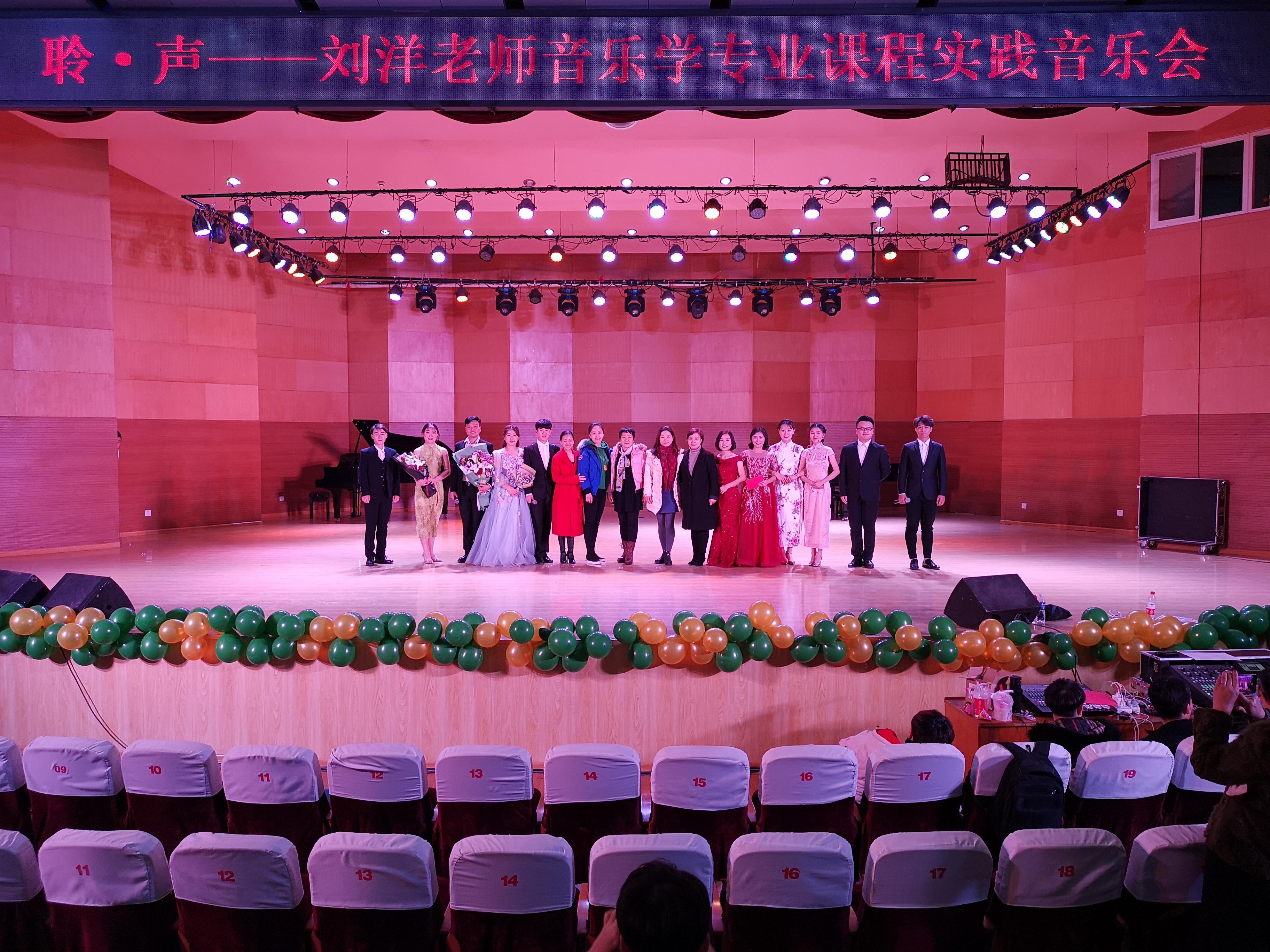 12月3日晚,“聆·声--刘洋老师音乐学专业课程实践音乐会”在南校音乐厅举行,党总支副书记贺昱、辅导员李曼宁以及各教研组老师出席本次晚会,17、18级全体学生到场观看。