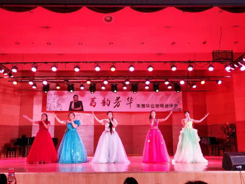本场音乐会歌曲新颖,中外作品丰富。一曲《花非花》拉开了晚会的帷幕,表达了欲言又止,但止不住又说出真情——夜半来天明去,既非花又非雾,说明确有人来.谁来谁去?隐而不吐,令观众回味无穷;《玫瑰三愿》、《假如你爱我》等耳熟能详的音乐作品,优美的旋律、抒情的歌声、唯美的舞台效果,让大家陶醉在声乐的海洋。意大利歌曲《我亲爱的爸爸》是普契尼额独幕歌剧《贾尼·斯基基》中的一首咏叹调,它表达了怀春少女对爱情的向往和忠贞,旋律极为优美,深情而动人。最后,由全体学生演唱的《老师,我想你》,唱出了对老师和母校的感激与不舍,音乐会圆满结束。