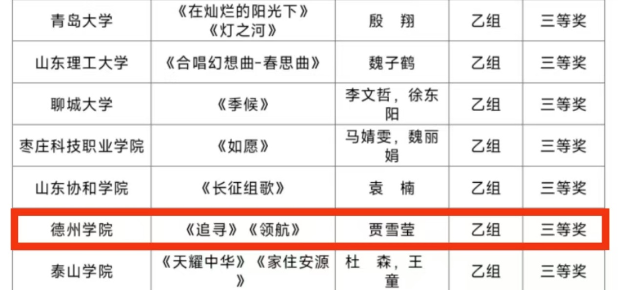 太阳成集团tyc151cc德之声合唱团在2024年山东省校园艺术节合唱戏剧专项展示活动荣获三等奖