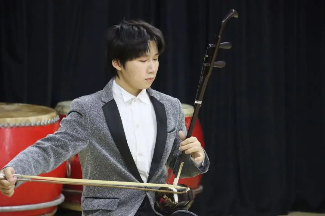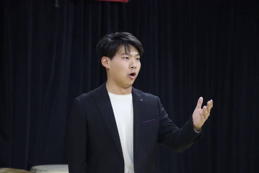 杨润墨同学带来的意大利歌曲《破旧的外套》选自于著名的歌剧作品《艺术家的生涯》。他那别具一格的声音,以其特有的情感和韵律,赢得了观众的热烈掌声。