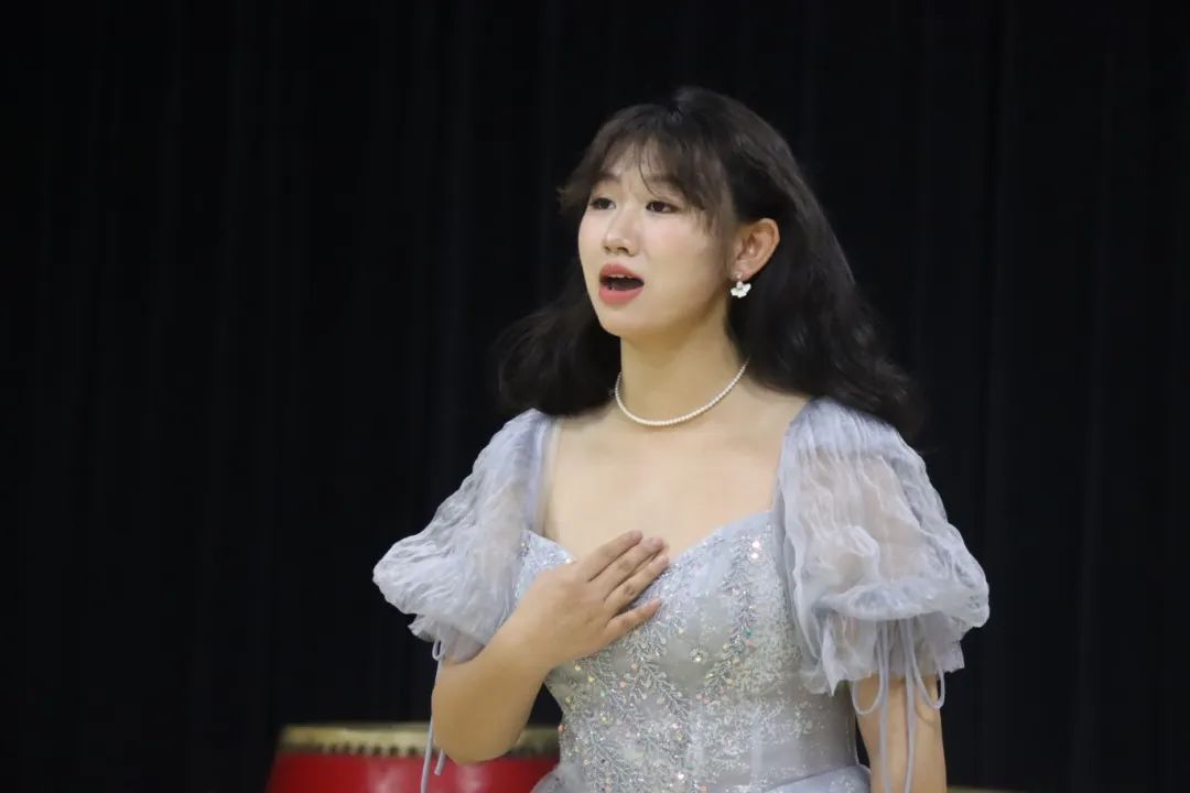 紧接着,曾昕同学以其细腻而充满情感的嗓音,将经典艺术歌曲《月光近,月亮远》演绎得淋漓尽致,每个音符似乎在空中跳跃,让观众深刻感受到歌曲中蕴含的深情与深远意境。