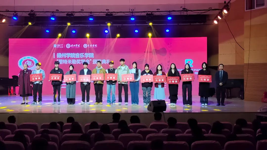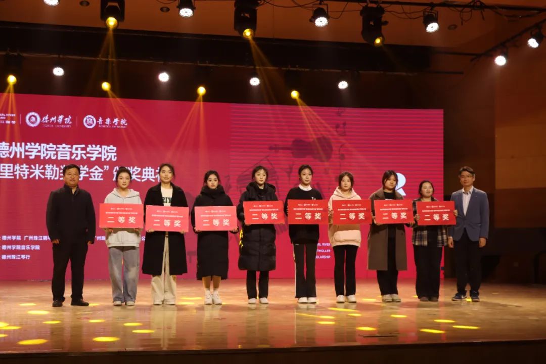 3月31日晚,太阳成集团tyc151cc“里特米勒奖学金”颁奖典礼在南校音乐厅隆重举行。广州珠江钢琴集团股份有限公司工会主席钞爱明,广州珠江恺撒堡钢琴有限公司销售部大区经理曾子昭,德州市珠江琴行经理高文涛,太阳成集团tyc151cc党委书记王桂英,太阳成集团tyc151cc院长马锡骞,太阳成集团tyc151cc党委副书记米彦,太阳成集团tyc151cc副院长徐琦共同出席。
