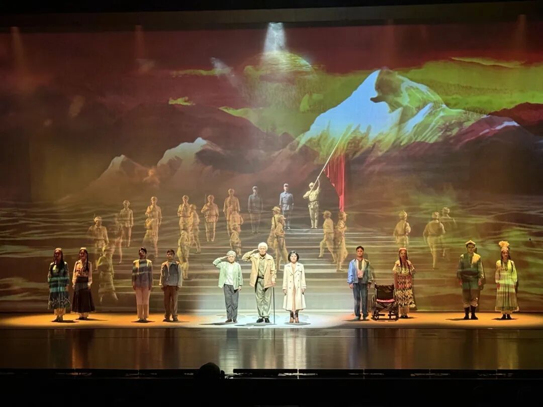 《日出渤海照天山》以山东渤海军区教导旅西征屯垦、扎根新疆的真实历史为背景,通过生动感人的舞台叙事,展现了一代代军民“献了青春献终身,献了终生献子孙”的忠诚与奉献。剧目跨越时空,将战争年代的英雄壮举与新时代援疆人的使命传承紧密联结,深刻诠释了爱国主义、民族团结与艰苦奋斗的精神内涵。观看过程中,师生深受触动,不少同学表示,这部剧不仅是一场艺术演出,更是一堂鲜活的思想政治课,让人深刻认识到艺术创作应扎根人民、反映时代,专业学习更应与国家需要同向同行。