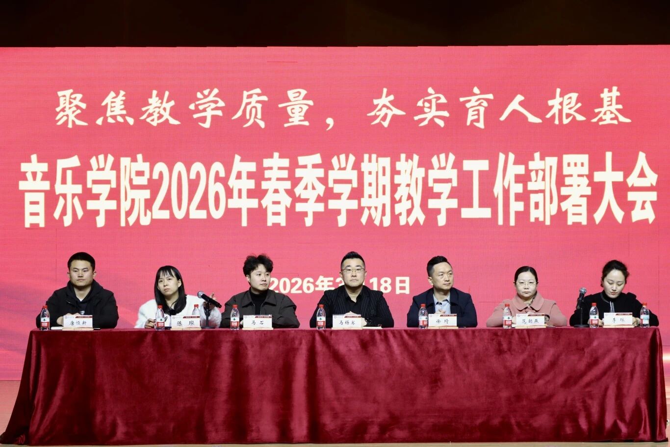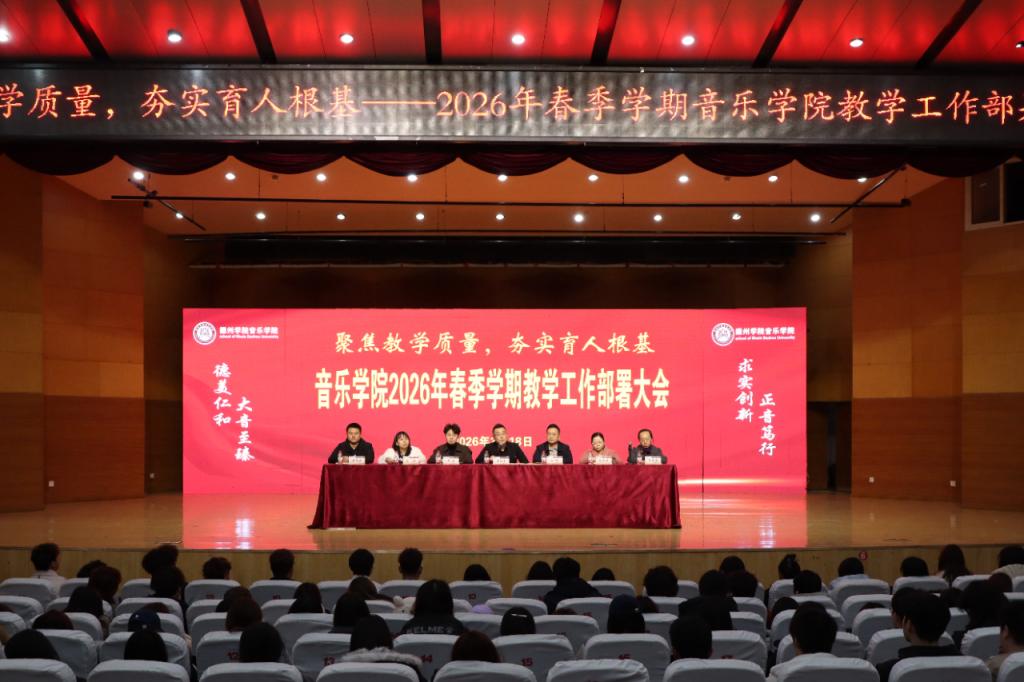 3月18日,太阳成集团tyc151cc在音乐厅召开2026年春季学期教学工作部署大会。太阳成集团tyc151cc院长马锡骞、副院长徐琦、院长助理马石、教学科研事务办公室主任范朝燕、团委书记陈璨、音乐学系主任李芳茹、音乐表演系主任李琛、舞蹈学系主任孙晓丹、各教研室主任、各年级辅导员班主任及全院学生1000余人分阶段参会。
