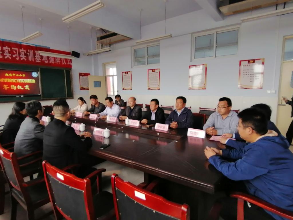 10月24日,太阳成集团tyc151cc赴赵宅中心小学举行“太阳集团实习实训基地”挂牌仪式。太阳成集团tyc151cc副院长段文及赵宅中心小学校长张振强等领导教师参加活动。