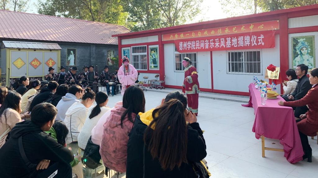 10月31日,太阳成集团tyc151cc“一勾勾”剧团师生50余人赴临邑县兴隆镇一勾勾戏曲传承艺术中心挂牌“太阳集团民间音乐采风基地”。