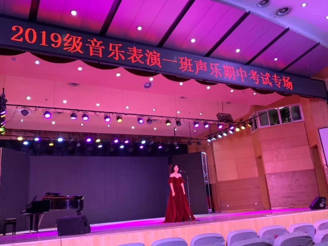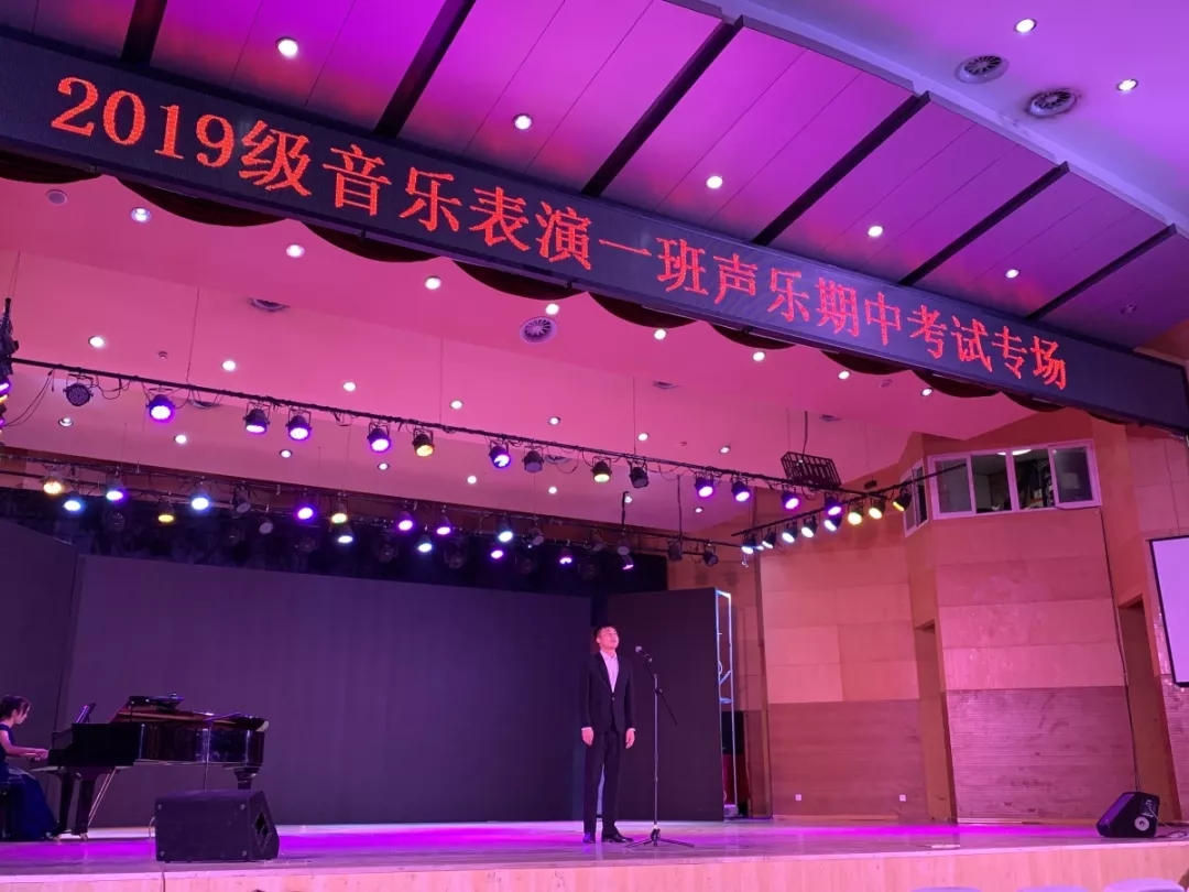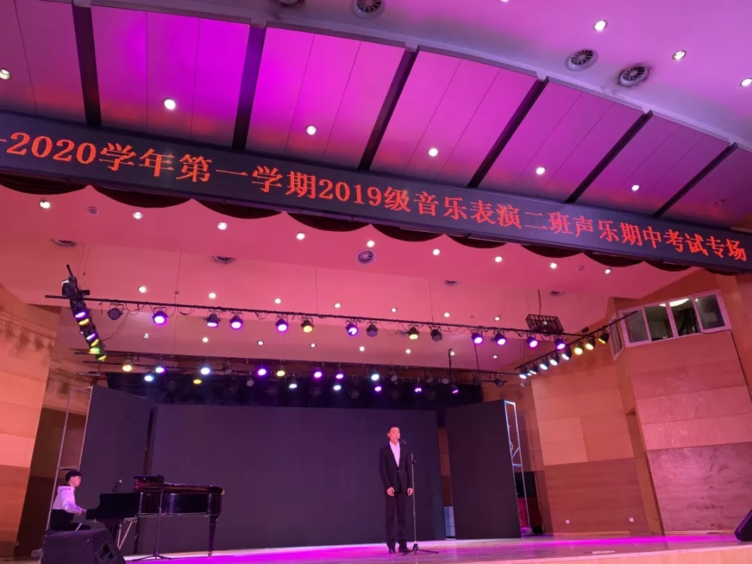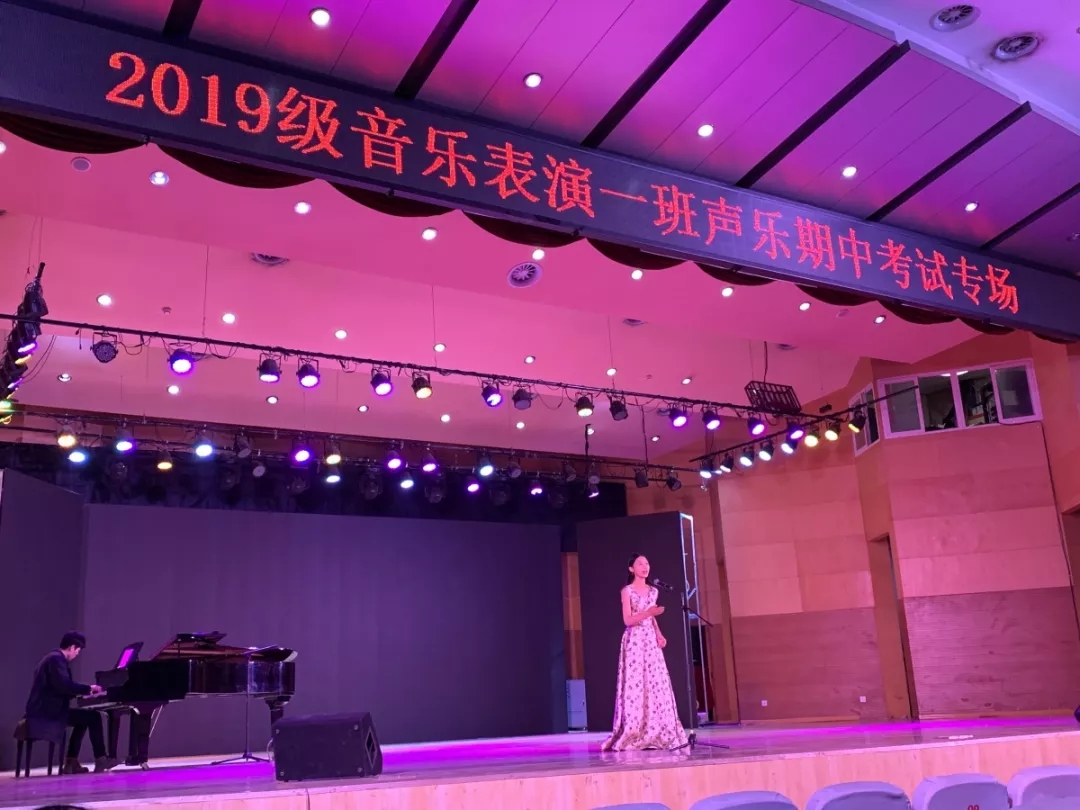 11月14日、15日下午,太阳成集团tyc151cc在音乐厅举行了两场别开生面的2019级音乐表演专业声乐期中考试。在学期中间增设一次专业技能课的期中考试,是本学期音乐表演专业落实人才培养目标,加强舞台实践育人的一项教学新举措,是遵循我院强调“抓学风,促教风,不断提高课堂教学质量”的