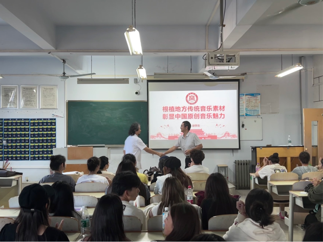 此次讲座徐学吉教授从三种音高思维模式、外国音乐中民族化写法分类与简介、音乐风格主张等方面进行了介绍。徐学吉教授以详实有据的分析、加之生动精彩的演绎为同学们简述音乐创作中本土化、民族化的问题,并列举世界名曲进行论证分析,深入浅出地说明音乐作品的生命力之所在。最后徐教授播放了自己创作的《春绿在人间》《呼唤第一乐章》等作品,通过赏析让同学们进一步了解音乐创作的魅力。
