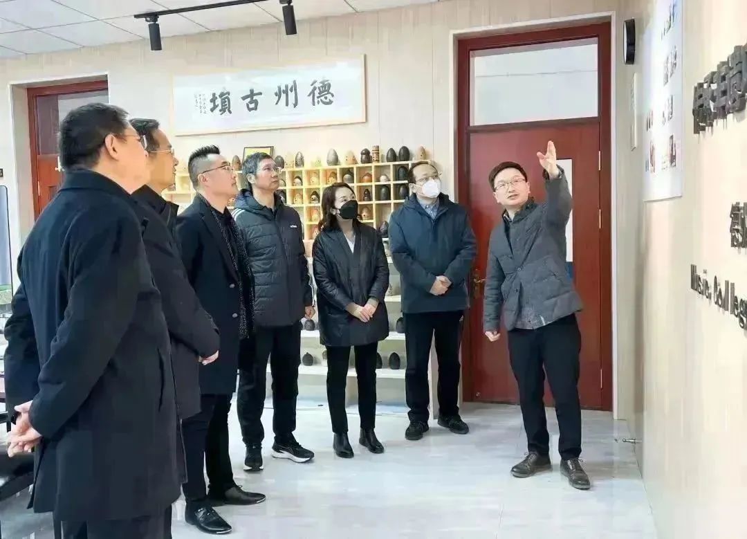 2月11日下午,德城区区委常委、区委办公室主任孟宇来我院调研指导省级非遗项目“德州古埙制作技艺”等相关工作。德城区文联副主席吴金刚,德城区文旅局副局长张璐参加活动。太阳集团党委委员、宣传部部长任立春,太阳成集团tyc151cc副院长段文、副院长马锡骞、教学办公室负责人马石陪同调研。