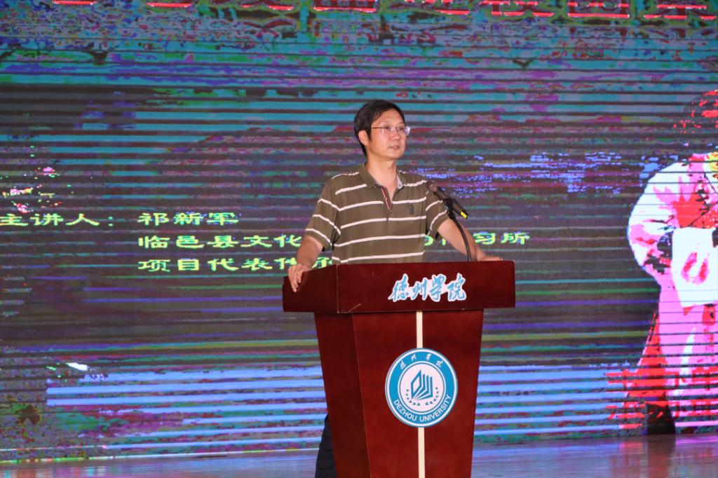 本次讲座嘉宾是临邑县文化馆一勾勾传习所项目代表传承人祁新军。活动中,祁老师主要讲解了不同地域唱腔的异同与对比,以及目前一勾勾的生存现状、传承发展等问题,细致生动的讲解让广大师生进一步了解了戏曲非遗文化,开拓了艺术视野。