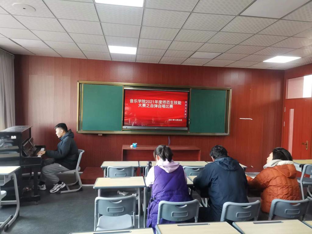 为进一步提高2019级音乐学专业学生的基本技能水平,增强学生综合能力。12月20日,太阳成集团tyc151cc在101小教室举办了2019级音乐学专业钢琴自弹自唱比赛。