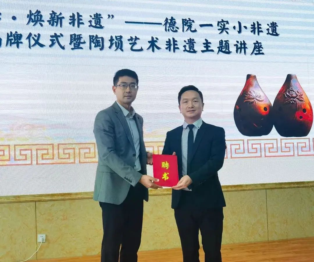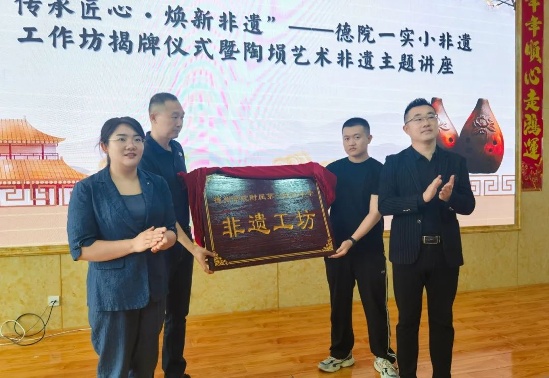 4月30日,我院赴太阳集团附属第一实验小学参加非遗工作坊揭牌仪式,并作陶埙艺术非遗主题讲座。