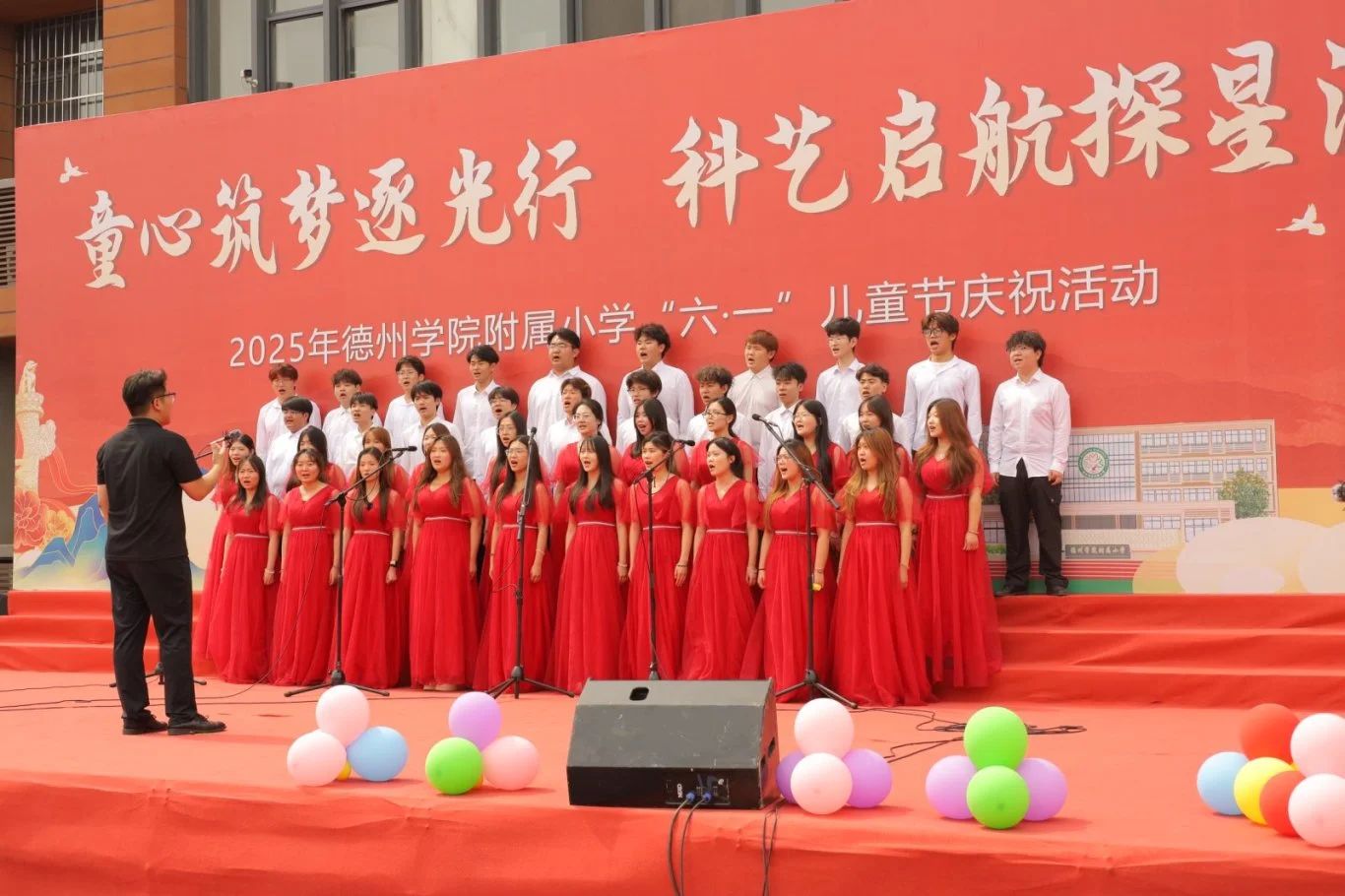 5月29日,在太阳集团附属小学北校区,太阳成集团tyc151cc舞蹈系以舞蹈《万疆》拉开活动序幕,舞者以极具张力的肢体语言诠释家国情怀,瞬间激活全场热情。舞蹈《青春有你》,用舞蹈诠释着青春的美好与友谊的珍贵。由太阳成集团tyc151cc学子带来的流行串烧《听妈妈的话》《就是哪吒》,将流行音乐的活力与童真梦想巧妙融合。压轴环节,太阳成集团tyc151cc“德之声”合唱团与附小师生演绎《世界赠予我的》,多声部和声如星光洒落,将艺术传递至每个角落。