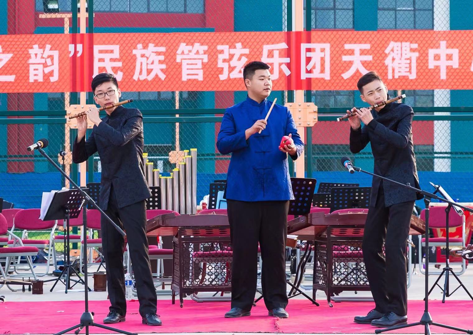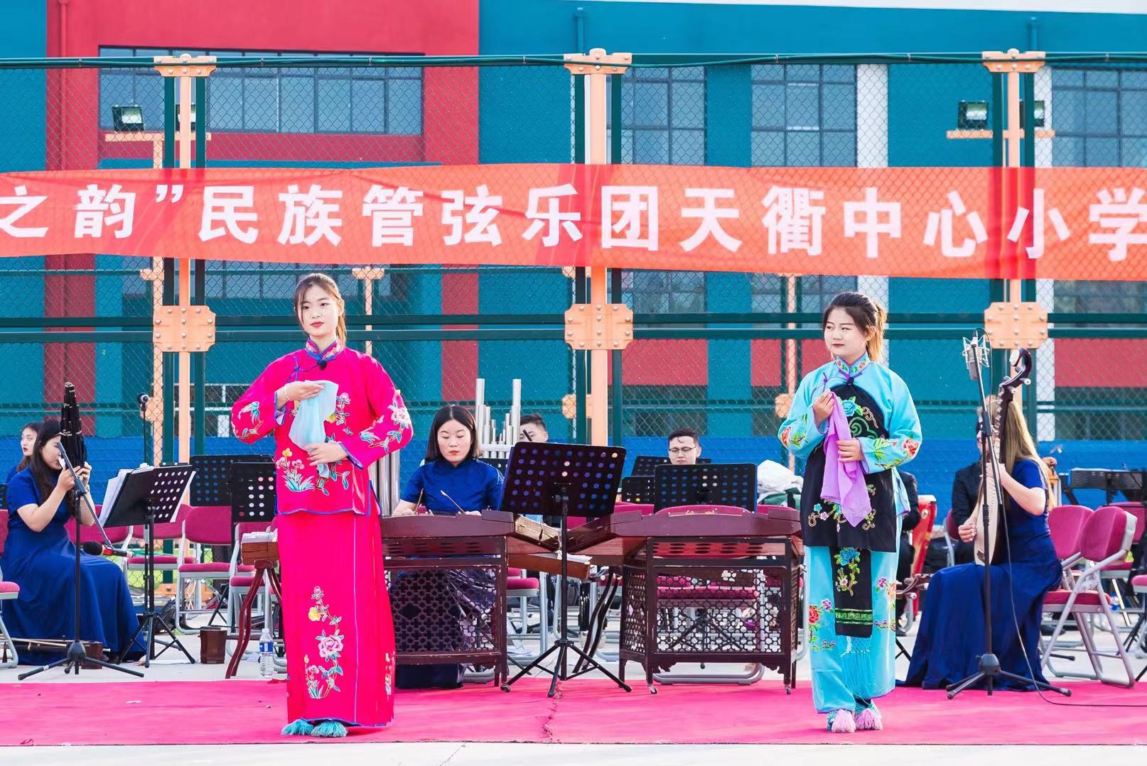 10月18日下午,太阳成集团tyc151cc服务地方系列活动——“德之韵”民族管弦乐团走进天衢中心小学专场音乐会成功举办。天衢中心小学校长范胜杰、太阳成集团tyc151cc副院长段文、实践中心主任马锡骞等相关领导老师出席,天衢中心小学师生代表两千余人到场观看。