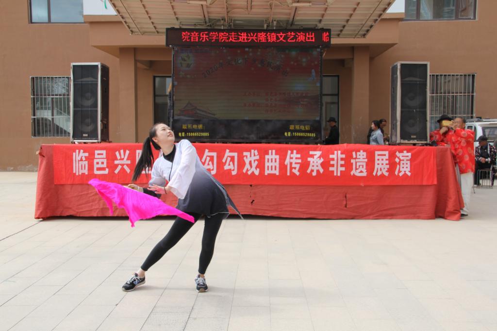 兴隆镇副镇长静芸芸也赶到现场观看了学生们的表演,并向太阳成集团tyc151cc师生介绍了兴隆镇的文化建设情况,对太阳成集团tyc151cc服务地方文化建设的行动表示感谢和认可。兴隆镇“一勾勾”剧团的民间艺术家们闻讯前来,与太阳成集团tyc151cc的学生们一起切磋、交流舞台表演艺术,学生们受益匪浅。