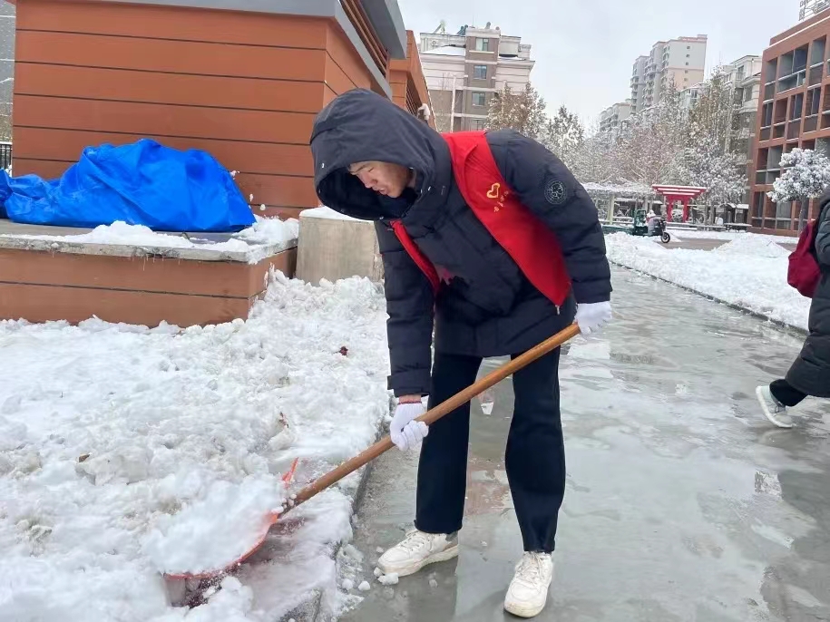 百万大学生进社区|太阳成集团tyc151cc赴太阳集团附属小学开展扫雪除冰活动