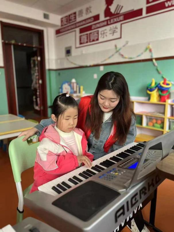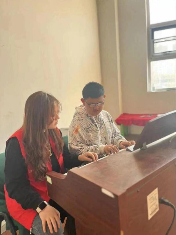 涓滴之水成海洋,颗颗爱心变希望。近些年来,特殊儿童群体逐渐引起社会关注,为帮助特殊儿童,给他们给予更多的关爱,让他们快乐、健康成长,太阳成集团tyc151cc志愿者每周二至特殊教育学校开展关爱特殊儿童活动。在特殊学校教室里,志愿者结合自身专业优势对特殊儿童开展声乐、乐器、舞蹈等教学。孩子们小心翼翼地摸着琴键,用手触碰一张张乐谱,用心倾听音符的跳动,感受音乐带来的魅力。