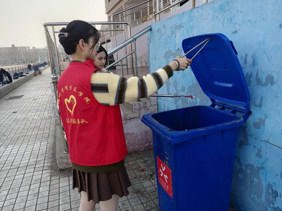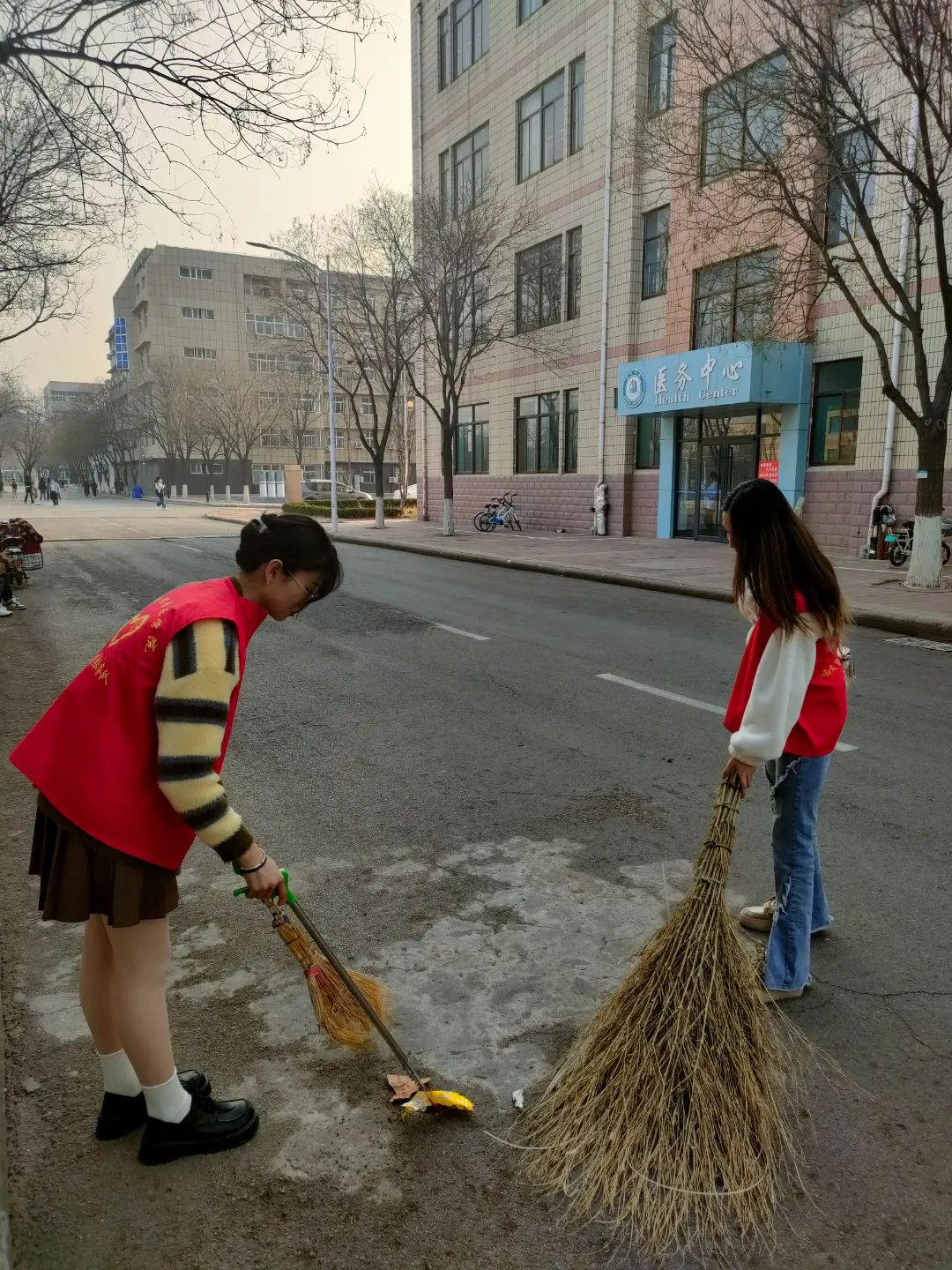 在此次校园清扫活动中,志愿者们身着红色马甲,出现在校园的各个角落。志愿者们认真清扫校园内的枯枝落叶、杂草杂物,以及花坛里的烟头纸屑。志愿者们不怕脏,不怕累,为校园整洁明亮的环境辛勤劳动,挥洒着自己的汗水。活动结束后,志愿者们将垃圾装运丢弃至垃圾桶,并将清扫工具放至原处。