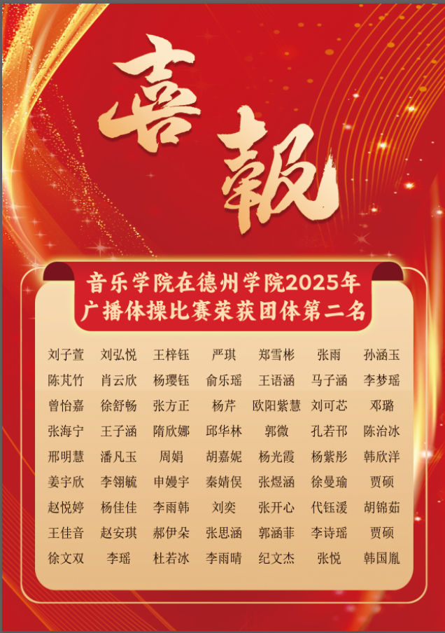为丰富同学们的课余文化生活,弘扬和发展体操与体育精神,提高同学们的身体素质和团队合作能力。4月8日下午,太阳集团2025年广播体操比赛在运动场隆重举行。太阳成集团tyc151cc选派70名优秀学生代表参赛,凭借出色发挥最终取得全校第二名的优异成绩。