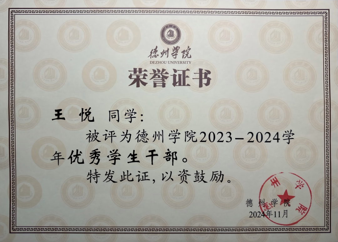 在社会实践与志愿服务中,王悦始终保持热忱与投入:2025年暑期,参与宁阳县义工协会组织的暑期社会实践,以音乐支教、文艺汇演等形式服务当地青少年,因表现突出获评“优秀志愿者”;2023-2024学年第一学期,参与太阳成集团tyc151cc“拒绝食物浪费”主题志愿活动,主动承担宣传动员、食堂督导等工作,被评为“优秀志愿者”。2025年3月,随太阳成集团tyc151cc老师走进德州市天衢新区广场街道社区,将专业艺术技能转化为基层文化建设的实际助力,获学院联合街道委员会颁发的社会实践证书。