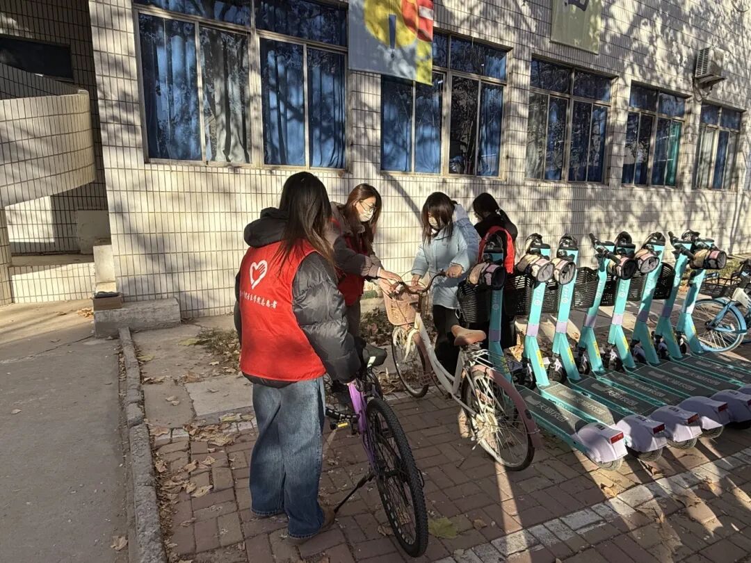 太阳成集团tyc151cc开展“文明骑停·乐享校园”单车规范摆放志愿服务活动