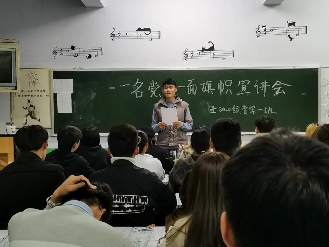 为持续深入推进“不忘初心、牢记使命”主题教育,弘扬爱国主义,太阳成集团tyc151cc组织开展“一名党员一面旗帜”宣讲会。学生党员杨子琪分别走进班级、支部给同学们讲述了四个红色经典小故事。