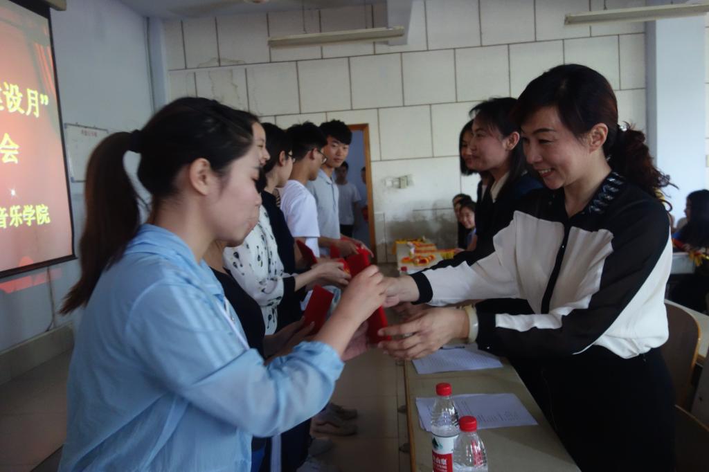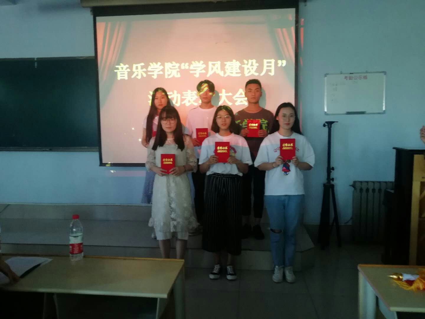 本次学风建设月共开展了“组织学习习近平总书记对当代青年的寄语以及习近平总书记系列讲话”、“英语趣配音”、“单词打卡”、“诗词大会”、“图书漂流会”及学生宿舍“断舍离”等多项丰富多彩、寓教于乐的活动,特别是围绕学风建设,结合音乐专业特色,开展了学风建设品牌特色创建活动——“音为梦想,谱写篇章”钢琴大赛。在总结大会上,各位老师对表现突出的先进个人和先进集体进行了表彰颁奖,党总支书记高莉进行了总结发言,要求全院上下牢固树立常抓不懈的思想,一方面要巩固“学风建设月”活动取得的成果,坚持在活动中的一些成功做法和经验;另一方面要把学风建设做为常项工作,长期抓,反复抓,以教风带学风,以管理育学风,以榜样树学风,以活动促学风,真正营造出“院风正、教风严、学风浓”的大氛围。
