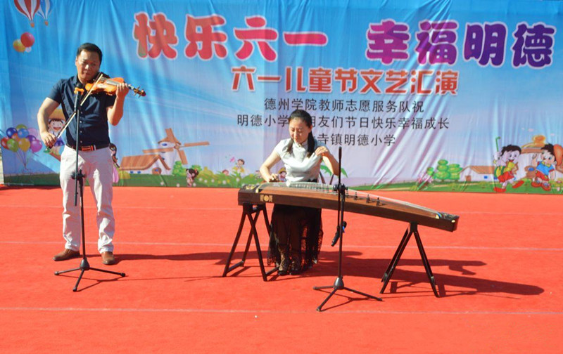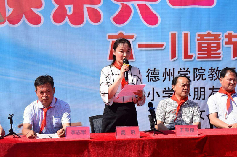 值此六一国际儿童节来临之际,5月31日下午,太阳成集团tyc151cc党总支书记高莉、副书记贺昱携太阳成集团tyc151cc教师志愿服务团队赴我校省派第一书记驻地——武城四女寺镇蔡村明德小学,与小朋友们共同举行“快乐六一、幸福明德”文艺汇演,并送上节日礼物和祝福。武城县县委挂职副书记杜卫东、武城县教育局党组书记、局长张义忠、四女寺镇党委书记田瑞华、副书记李志军、学区校长徐善治、太阳集团工会副主席田国柱等出席活动。