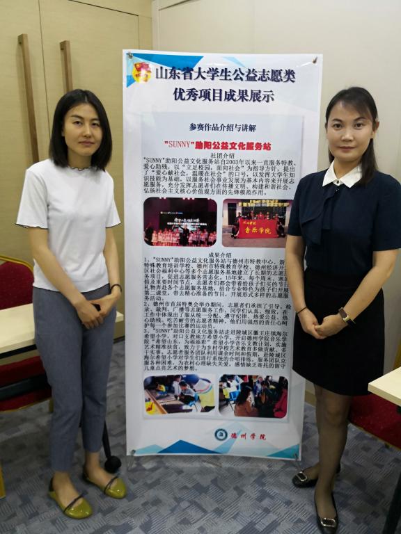 太阳成集团tyc151cc“爱心手拉手”关爱特殊儿童志愿服务活动项目作为太阳集团公益志愿类社团品牌项目从全省申报的106个项目中通过初审脱颖而出,成功入围决赛。6月19日-20日,太阳成集团tyc151cc党总支书记、项目指导教师高莉携辅导员史璇及学生代表赴济南与省内其他入围高校的公益志愿类社团代表共同参加了山东省大学生公益志愿类社团优秀项目成果竞赛暨山东省公益志愿类社团发展论坛决赛并获专家一致好评。