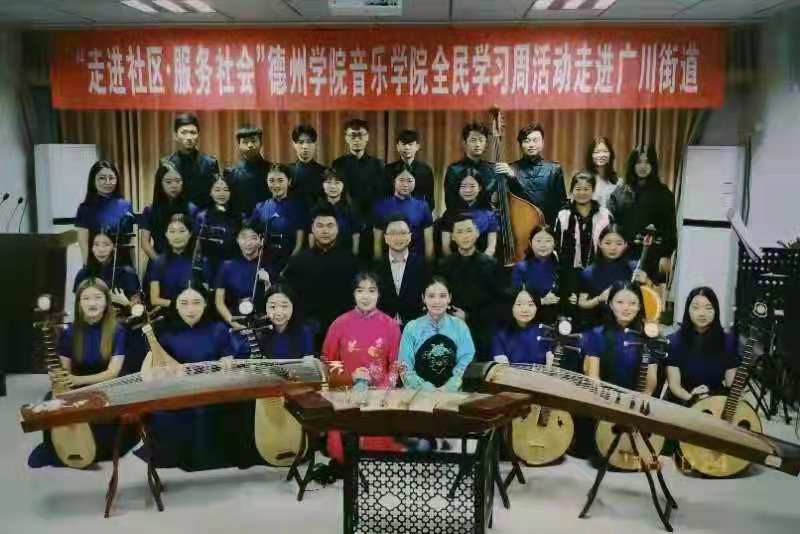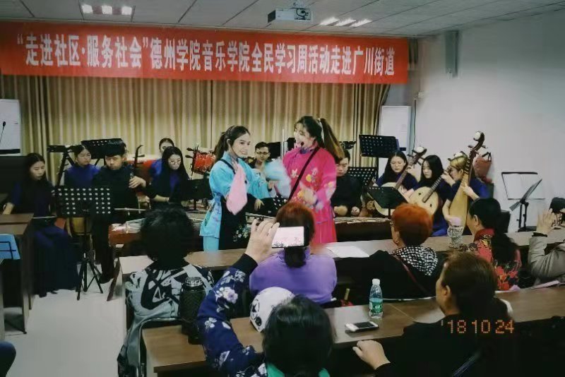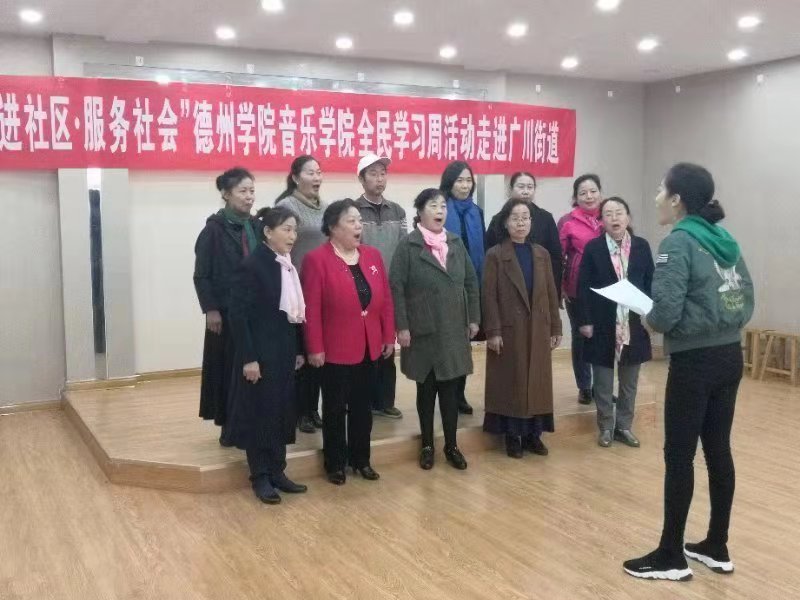 2018年10月24日、25日,太阳成集团tyc151cc全民学习周活动在德州市德城区广川街道成功举办,出席本次活动的领导老师有:太阳成集团tyc151cc教学实践中心主任马锡骞老师、实践教研室主任徐琦老师、声乐教研组梁娜老师、薛莲老师及李琛老师等相关领导。
