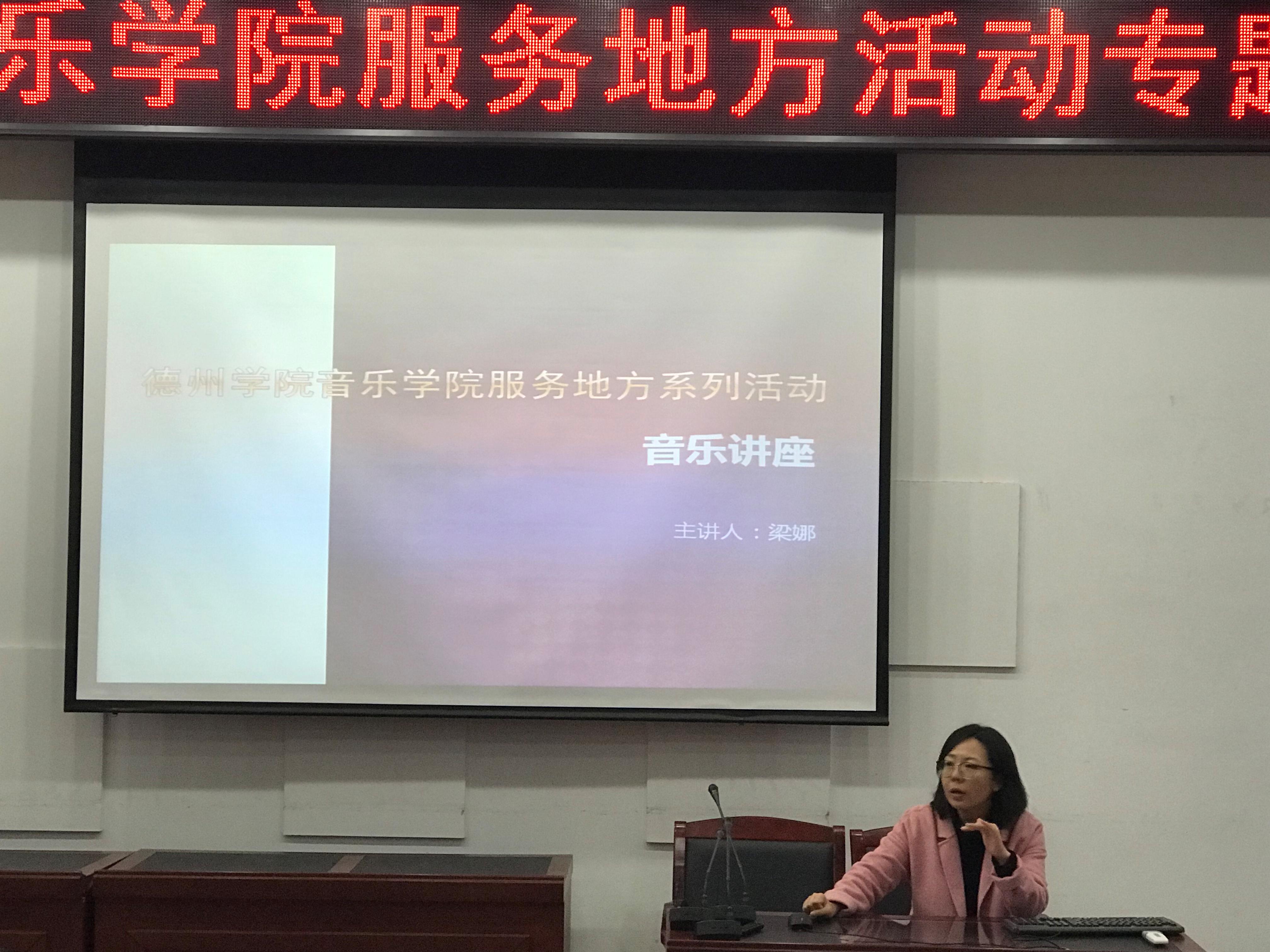 授牌仪式结束后,由太阳成集团tyc151cc梁娜老师为乐陵二中师生开展讲座,讲座通过讲演结合的方式,围绕音乐的审美功能、高中学生音乐发展能力、艺考生专业学习等方面展开,博得在场听众的热烈掌声。