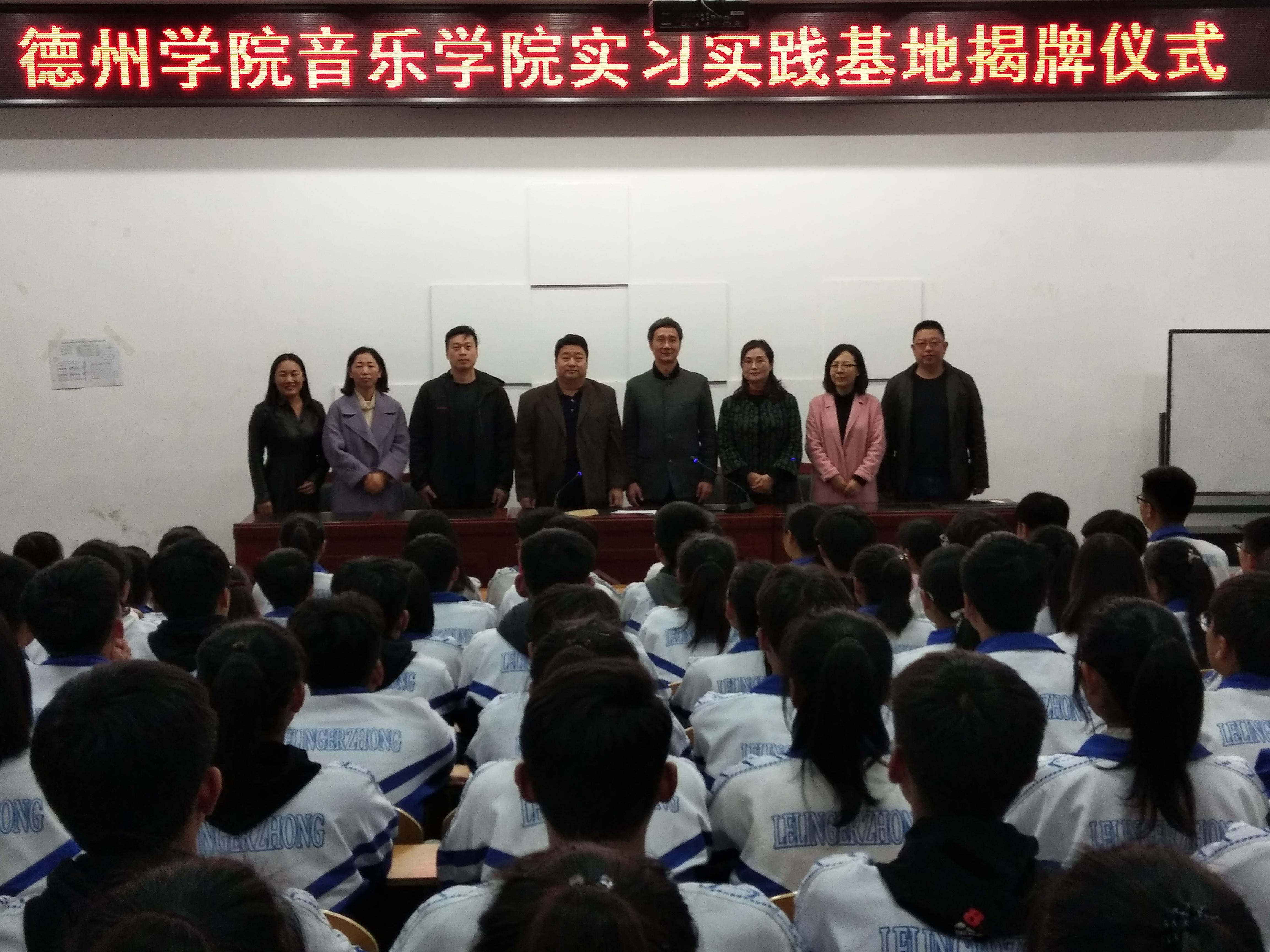 参加此次活动的有乐陵市教育局工会主席徐英、乐陵二中校长杨景昌、副校长庞浩、音乐教研组组长潘毅、太阳成集团tyc151cc副院长段文、音乐表演系主任武凌、实践教研室主任梁娜、音乐学系声乐教研室主任杜乡。双方代表签订了《太阳集团教育教学实践基地协议书》《太阳成集团tyc151cc专业实习实践基地协议书》,并进行了授牌仪式。