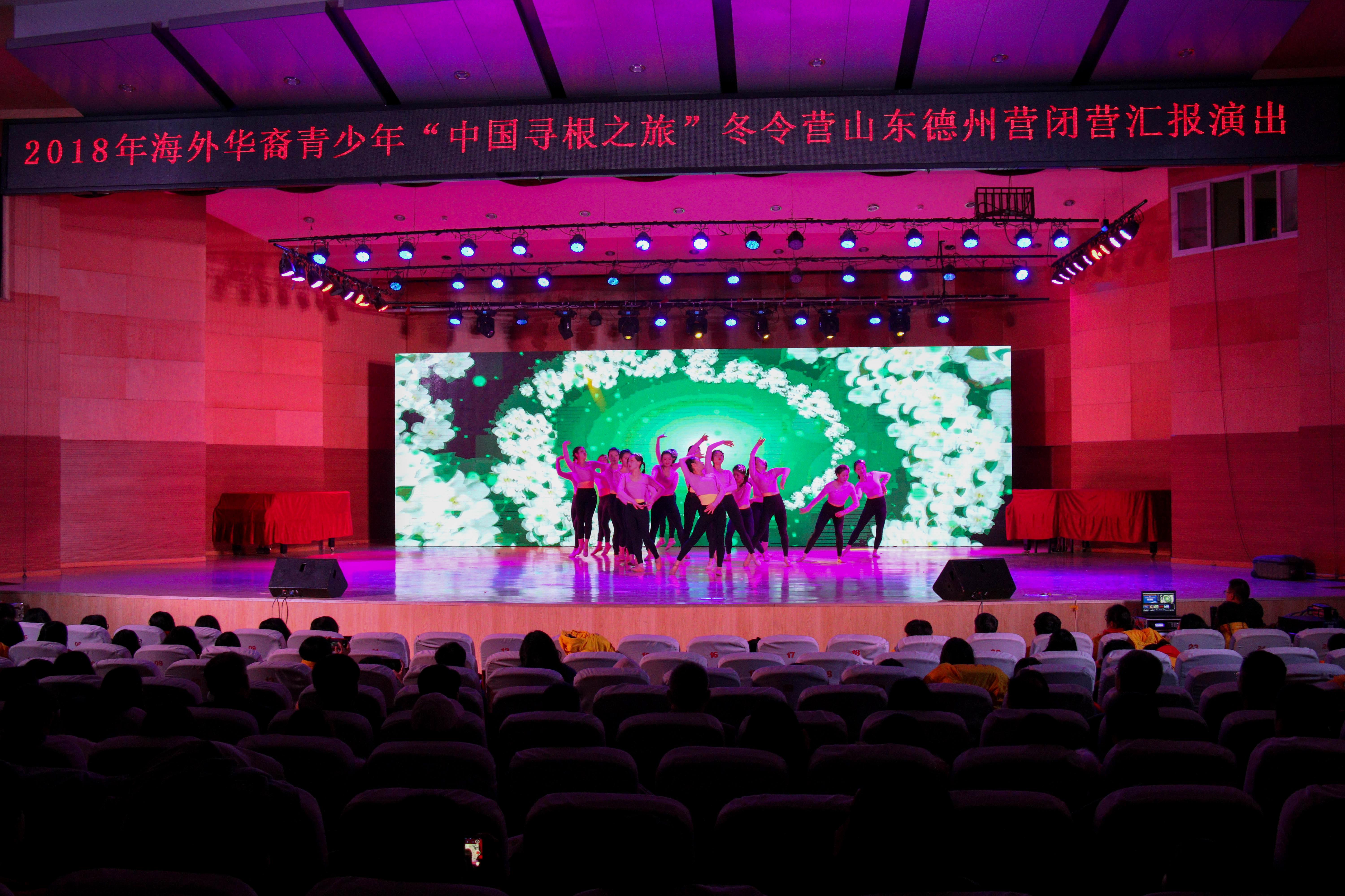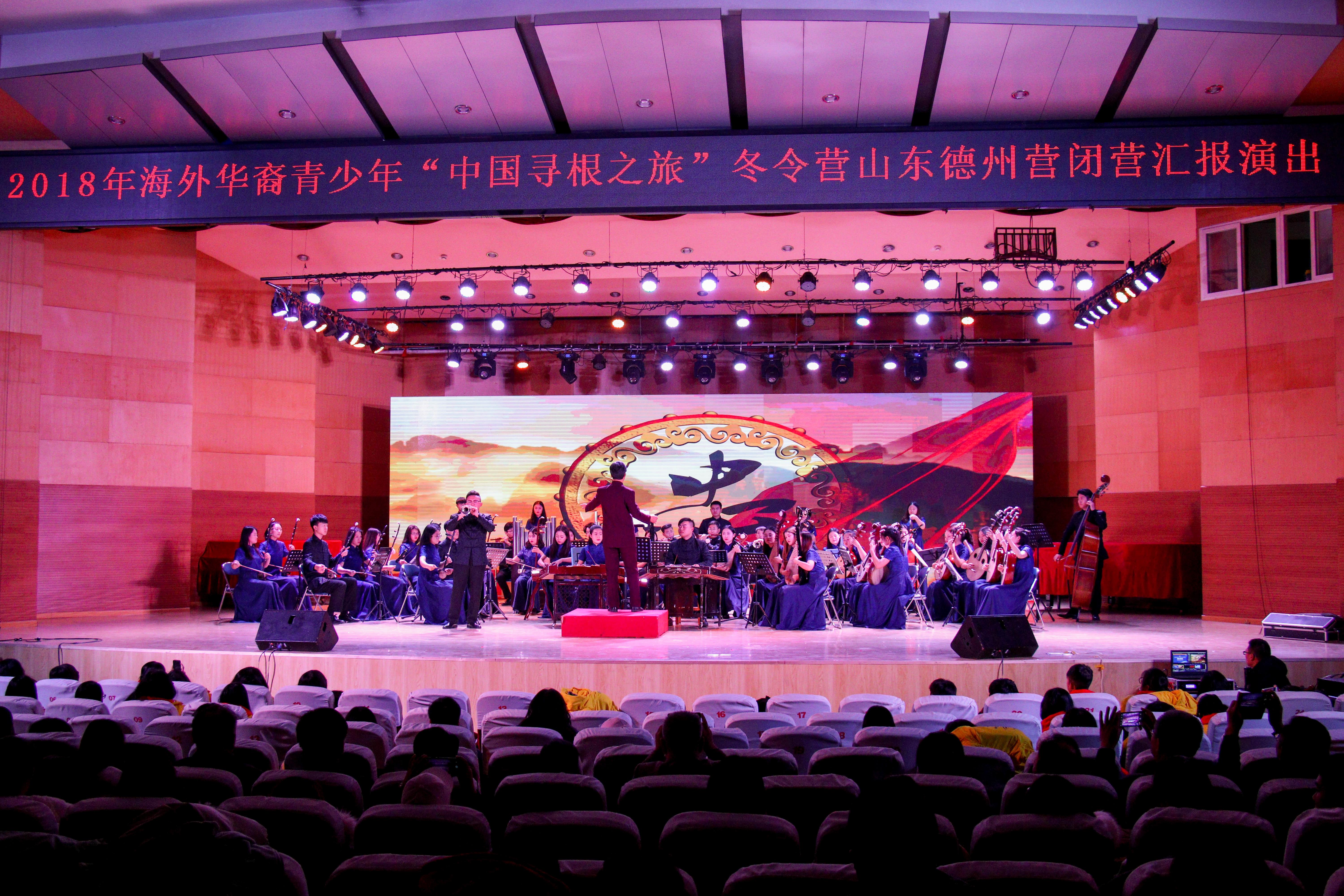 11月30日下午,2018年海外华裔青少年“中国寻根之旅”冬令营山东德州营闭营汇报演出在南校音乐厅举行。校党委委员、副校长李永平,马来西亚汉文化中心副主席李玉涓,马中经贸文化促进会会长陈泰隆,德州市人大常委会副主任、市总工会主席周玉刚及太阳成集团tyc151cc院长田屹、音乐教学实践中心主任马锡骞等领导出席。汇报演出中,太阳成集团tyc151cc表演了由民乐团伴奏的唢呐曲《梁山随想》、民歌串烧及舞蹈《春知沂蒙》,海外学生与太阳集团武术协会共同表演了武术《传承》、与德州市京剧学校教师共同表演京歌联唱《同圆中国梦》等节目,演出在歌曲《同圆中国梦》中圆满结束。