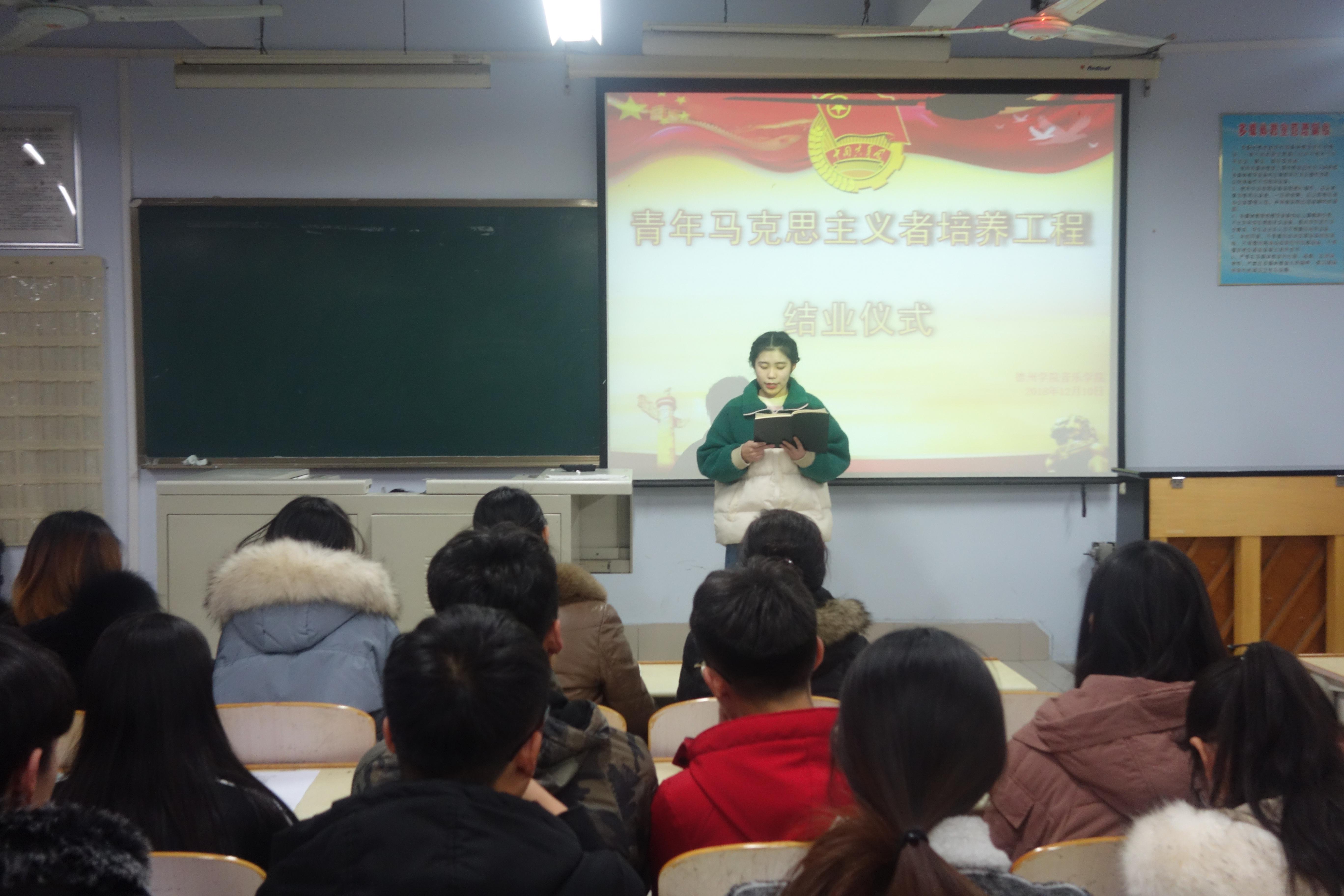 12月10日晚,太阳成集团tyc151cc第一期“青年马克思主义者培养工程”大学生骨干培训班结业仪式在音乐楼2004顺利举行,太阳成集团tyc151cc党总支书记高莉、副书记贺昱、团总支书记史璇、辅导员李曼宁及培训班全体学员参加。