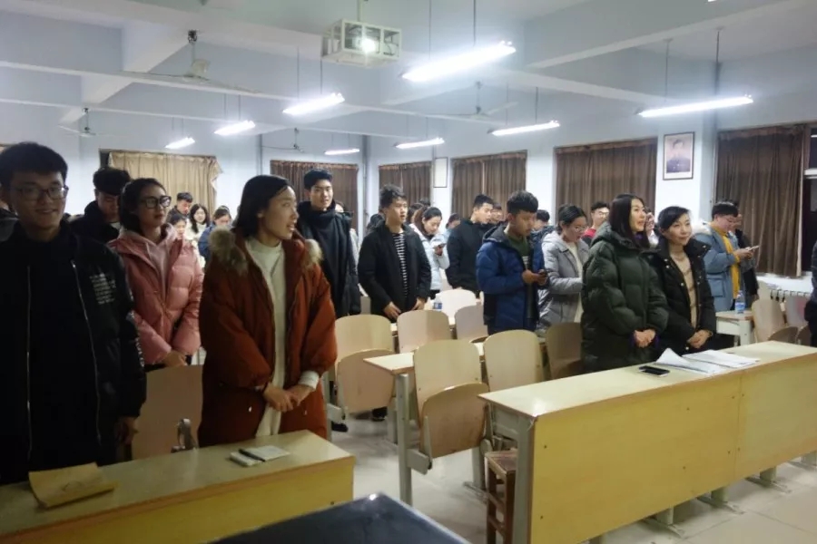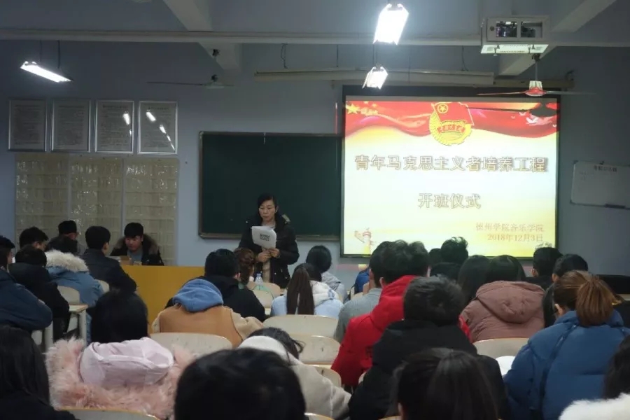 为提高大学生骨干的思想政治素质、创新能力、组织协调能力,引导青年学生进一步坚定跟党走中国特色社会主义道路的理想信念,12月3日晚,太阳成集团tyc151cc在音乐楼3004教室举行了2018年“青马工程”培训班开班仪式。党总支副书记贺昱、团总支书记史璇及90余名培训班学员出席。