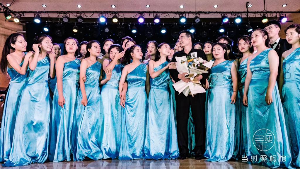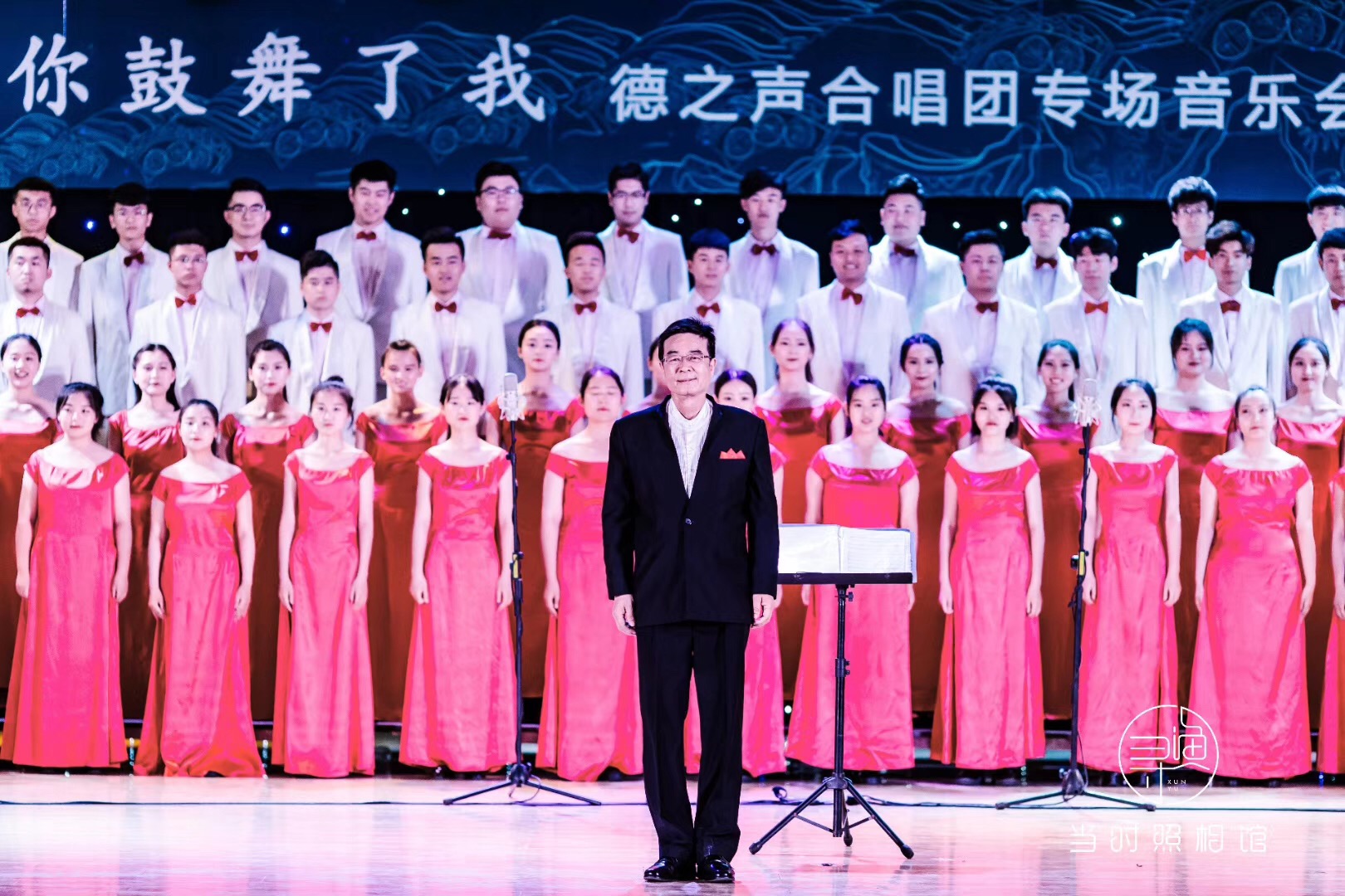 本场音乐会是张国庆教授从教近四十年,临近退休前的最后一场汇报演出,受到了太阳成集团tyc151cc往届毕业生的广泛关注,吸引了众多德州市合唱领域爱好者,音乐会由张国庆教授亲任指挥,任陆博士担任钢琴伴奏。初始,音乐会伴随着旋律舒缓、情绪委婉的歌曲《思念》,拉开帷幕。“德之声”合唱团演唱了充满活力的《去一个美丽的地方》、潇洒温柔的《雪花的快乐》、优美柔和又具有神秘色彩的《夜来香》等二十首经典合唱曲目,中场期间,太阳成集团tyc151cc青年教师代表刘洋老师倾情演唱《望月》、《芦花》两首歌曲,送上太阳成集团tyc151cc青年教师的祝福。在音乐会返场环节,张国庆教授为到场观众奉献上亲自改编的合唱作品《老师,我想你》,送给天下所有的老师,以表达自己对教育事业的热爱与敬意。最后,全国各地赶来的 “德之声”合唱团的往届毕业生,也登台献唱,以歌声表达了对张国庆教授的感恩之心,并送上深深的祝福。
