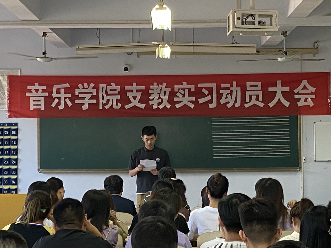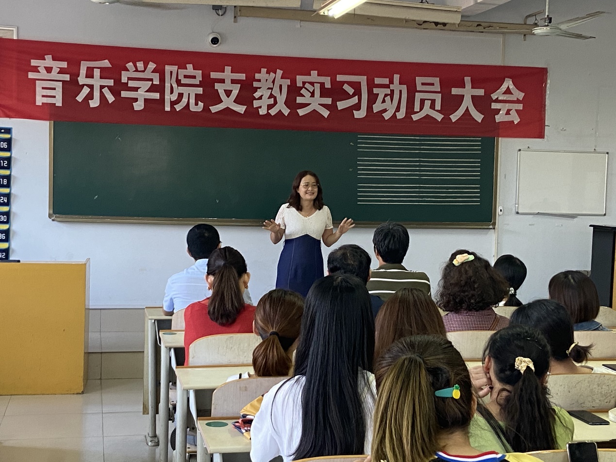 为更好地贯彻山东省师范生实习支教工作精神,落实我校实习支教工作方案,2020年9月8日,太阳成集团tyc151cc在3004教室举办了2020年秋季实习支教动员大会。太阳集团教务处实践科科长张曰云、太阳成集团tyc151cc副院长段文、音乐学系主任杜乡、太阳成集团tyc151cc团总支书记陈璨、太阳成集团tyc151cc支教实习指导教师和2017级全体支教生参加了动员大会。会议由杜乡主持。