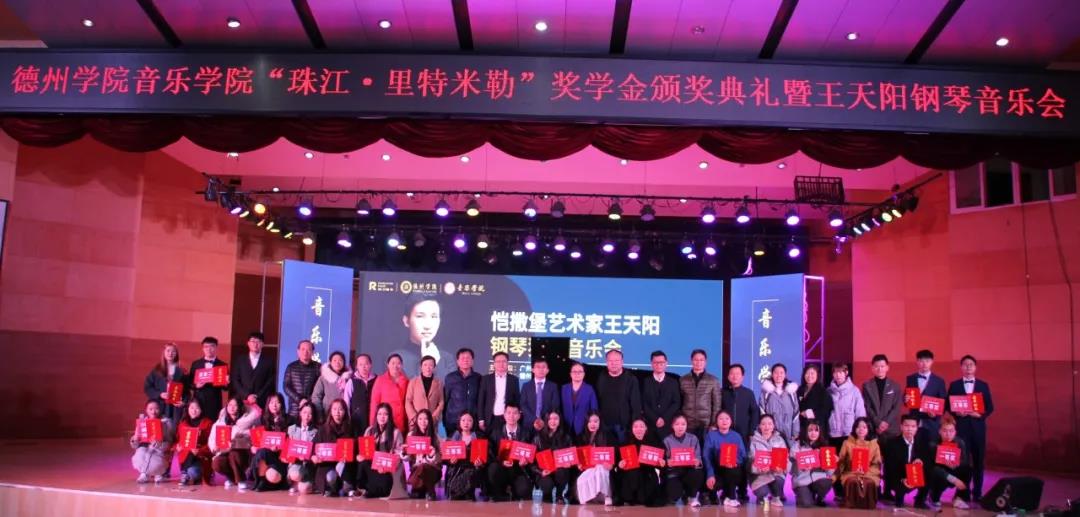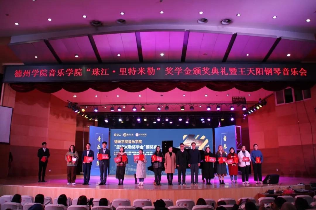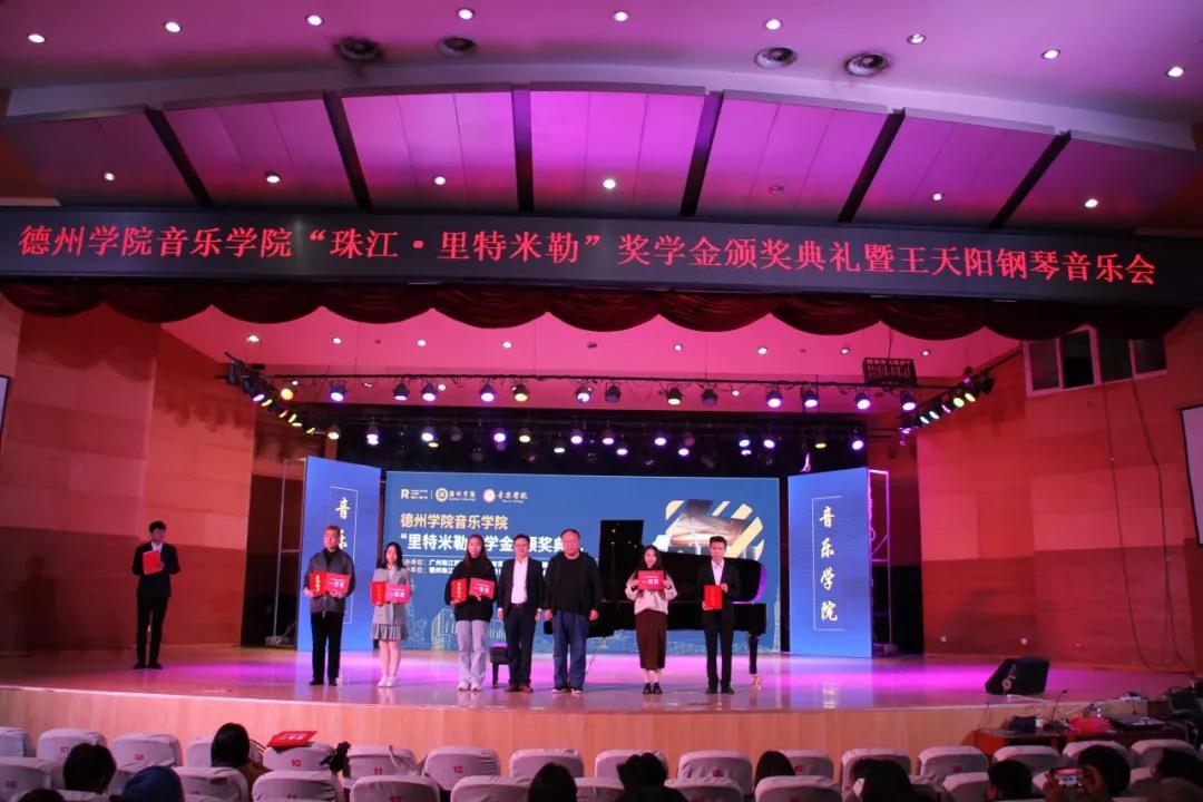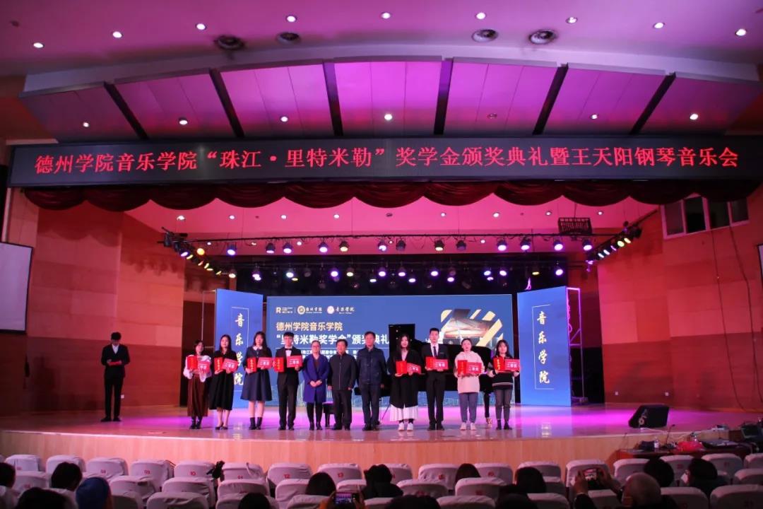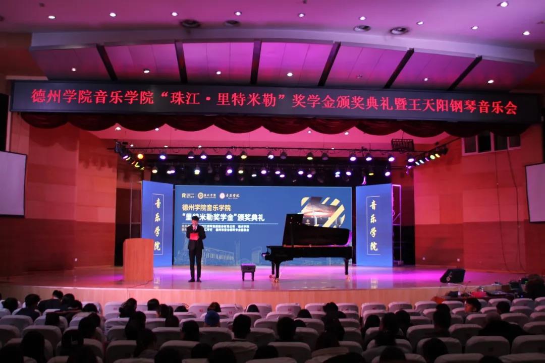 11月23日晚七点,太阳成集团tyc151cc“里特米勒奖学金”颁奖典礼暨王天阳钢琴独奏音乐会在南校音乐厅隆重举行。太阳集团合作发展处刘晓东副处长、广州珠江钢琴集团股份有限公司副总经理陈宣德、珠江钢琴集团广州珠江恺撒堡钢琴有限公司销售部业务经理黄健勇、珠江钢琴德州地区经销商德州珠江琴行总经理高文涛、太阳成集团tyc151cc领导班子成员共同出席。