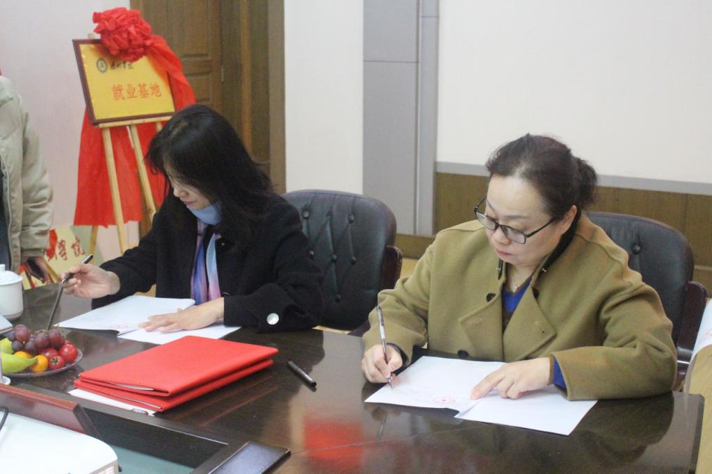最后,双方领导共同签订了《太阳集团就业基地共建协议书》、《太阳集团教育实践基地协议书》、《太阳集团横向课题研究合同书》,并举行教育实践基地和就业基地的揭牌仪式。