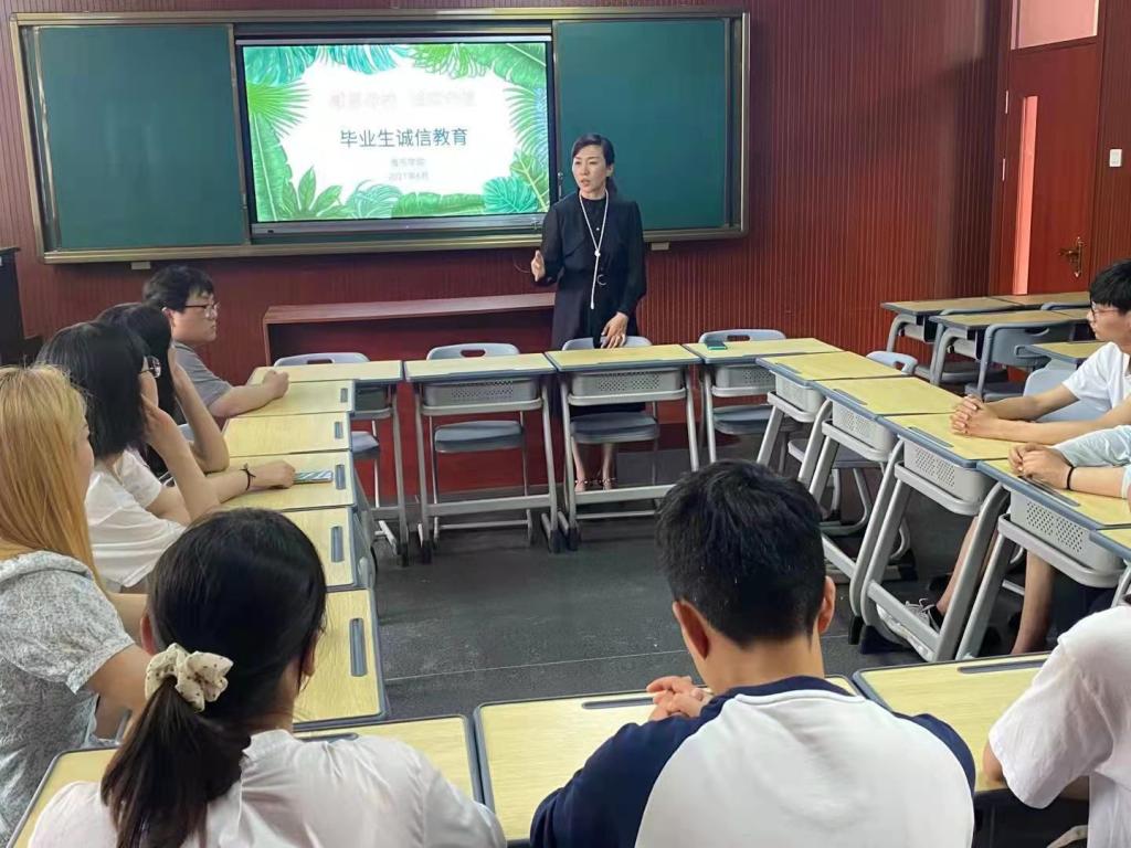 毕业生教育活动月期间,为帮助学生树立诚信意识,增强学生感恩母校情怀,促进学生全面成长成才,太阳成集团tyc151cc于6月9日举行了“感恩母校,诚实守信”毕业生诚信教育活动。太阳成集团tyc151cc党总支副书记贺昱主讲,2021届毕业生代表参加。
