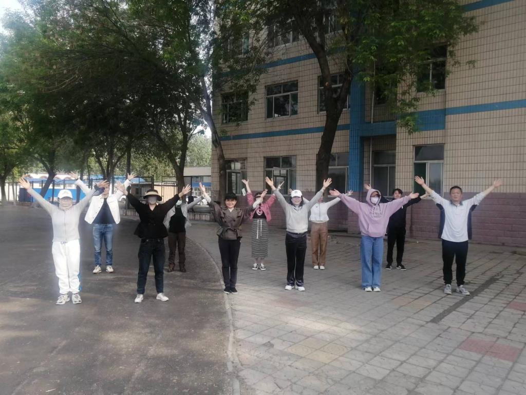 活动开始之前,大家一起健身操进行热身。