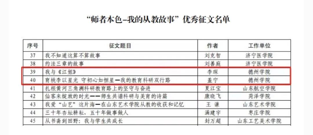 近日,山东省教育厅公布2025年“师者本色—我的从教故事”优秀征文名单,我院李琛老师撰写的《我与<江姐>》一文荣列其中,闪耀全省高等教育组榜单。