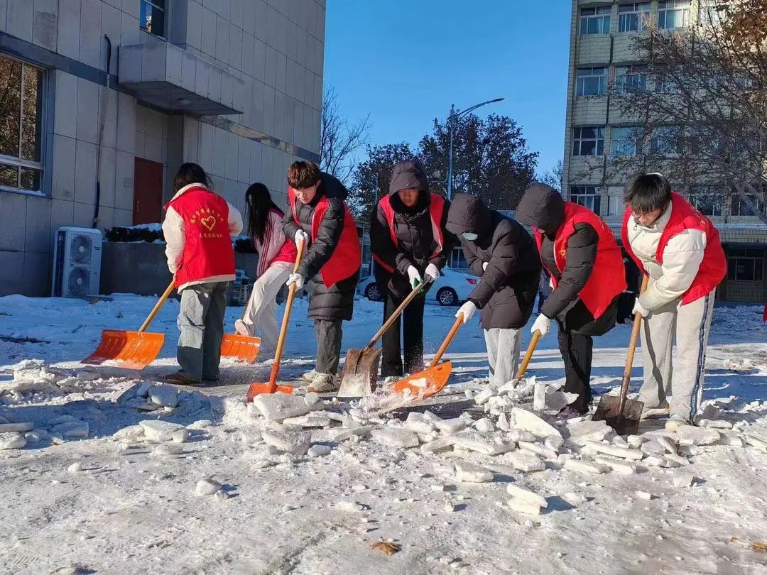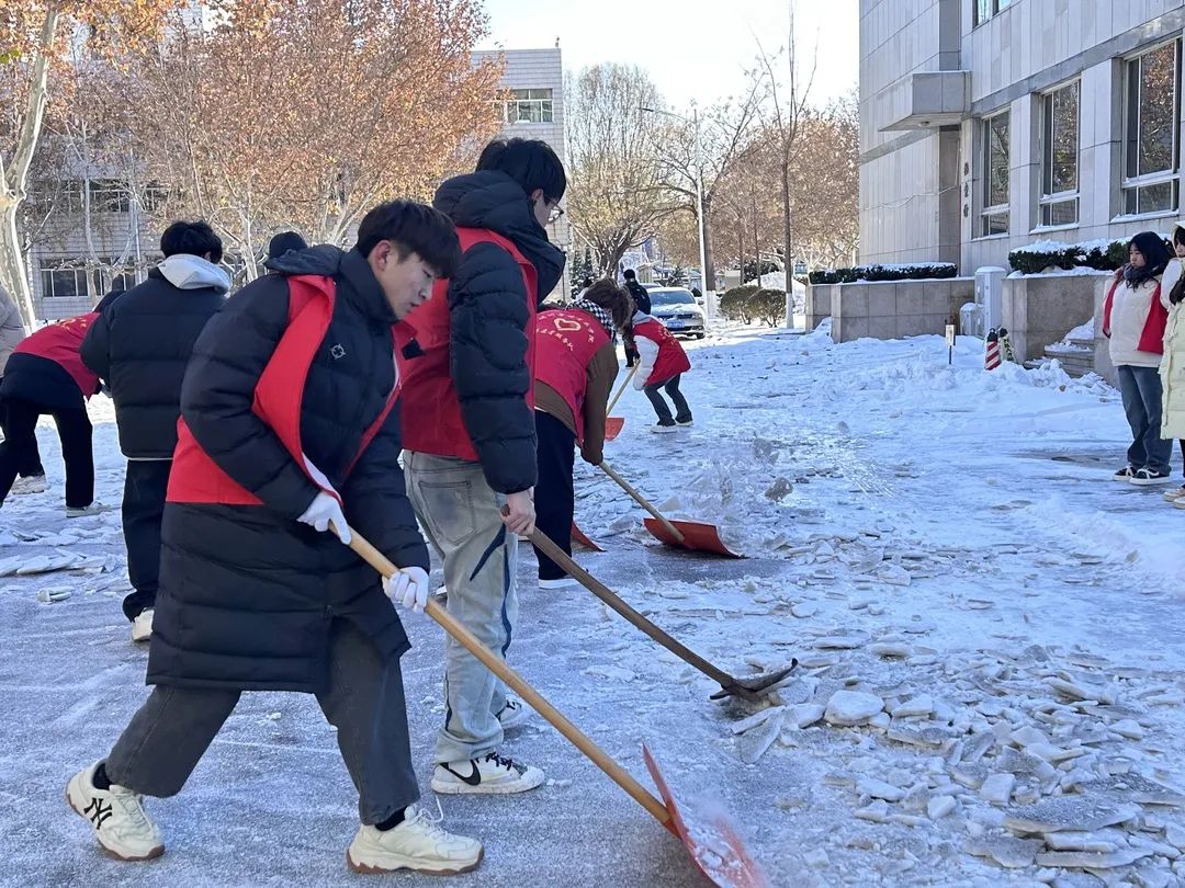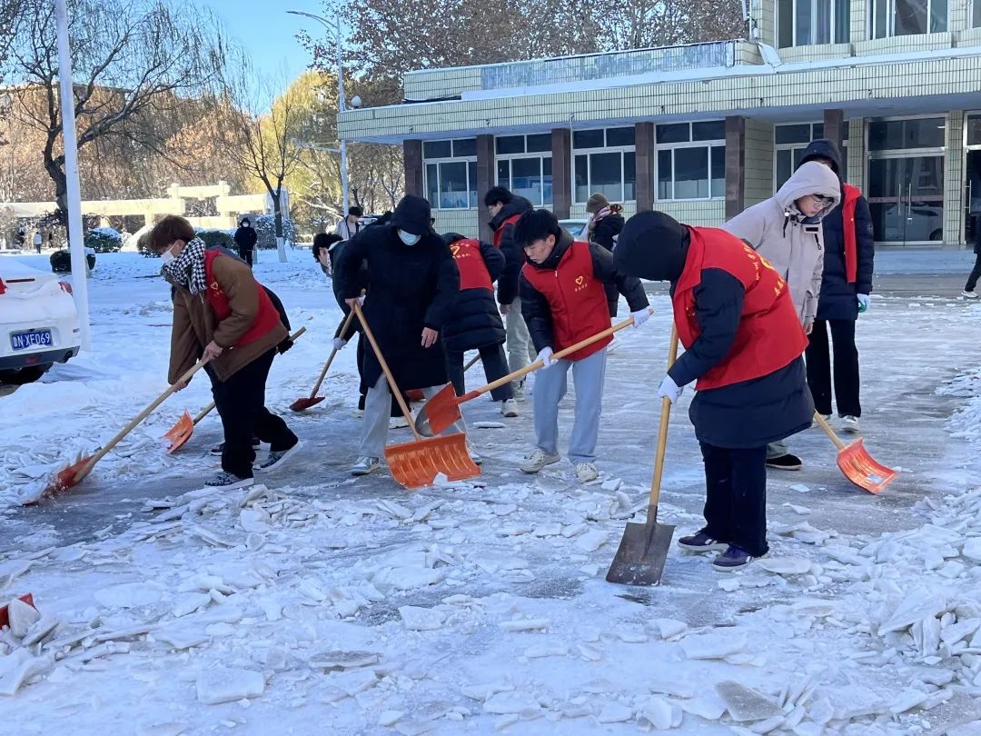我为同学做实事|太阳成集团tyc151cc开展“扫雪除冰护人行”志愿服务活动