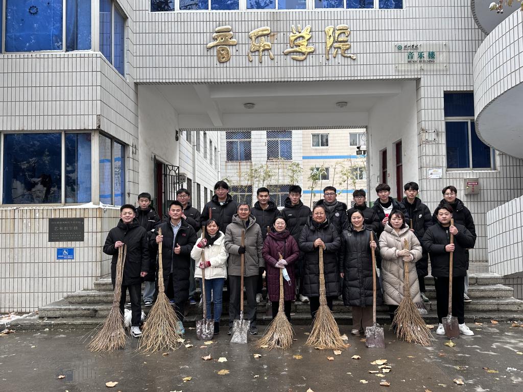 大雪过后,校园银装素裹,美丽的雪景装点了校园,也给校园安全带来了许多隐患。为确保师生出行安全,消除降雪带来的安全隐患,12月11日,太阳成集团tyc151cc开展“情暖冬日 扫雪助行”志愿服务活动,党委负责人王桂英、行政负责人段文、党委副书记米彦、教师代表、辅导员老师和学生志愿者共计二十余人参加此次活动。