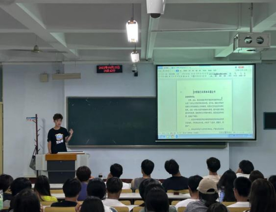为进一步提升大学生思想道德水平和文明素养,引导学生自觉正言行、律举止、修内涵,形成大学生文明新风尚,9月15日,太阳成集团tyc151cc在5号楼201、202教室开展“提升文明素养,争做文明标兵”主题班会。