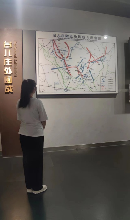 在台儿庄大战纪念馆内,队员们依次参观了台儿庄战役纪念馆、战地记者馆、六十军史料展等展厅。展馆内的一件件实物、一幅幅照片,反映了团结抗战的“同仇敌忾”,“共抵外辱”,取得了抗日战争以来的重大胜利,一举浇灭了日军的嚣张气焰。捍卫了祖国城池的安全,提升了部队的抗战士气,坚定了全国军民的抗日信心。