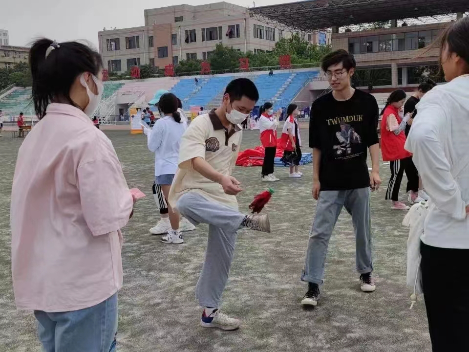 5月29日下午,学校心理健康教育与咨询中心开展了“心向未来,绽放风采”户外心理素质拓展活动,太阳成集团tyc151cc积极参加并承办4个项目:“‘毽’舞飞扬”、“伴你同行”、“拯救情绪大作战”、“翱翔吧我的理想”。