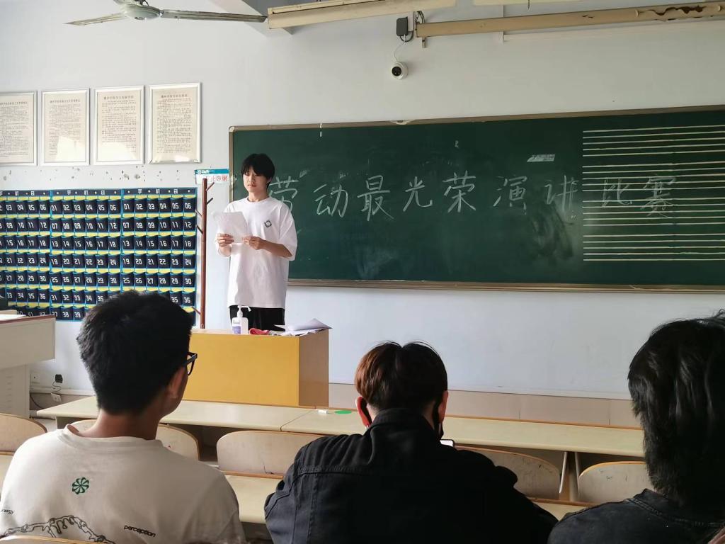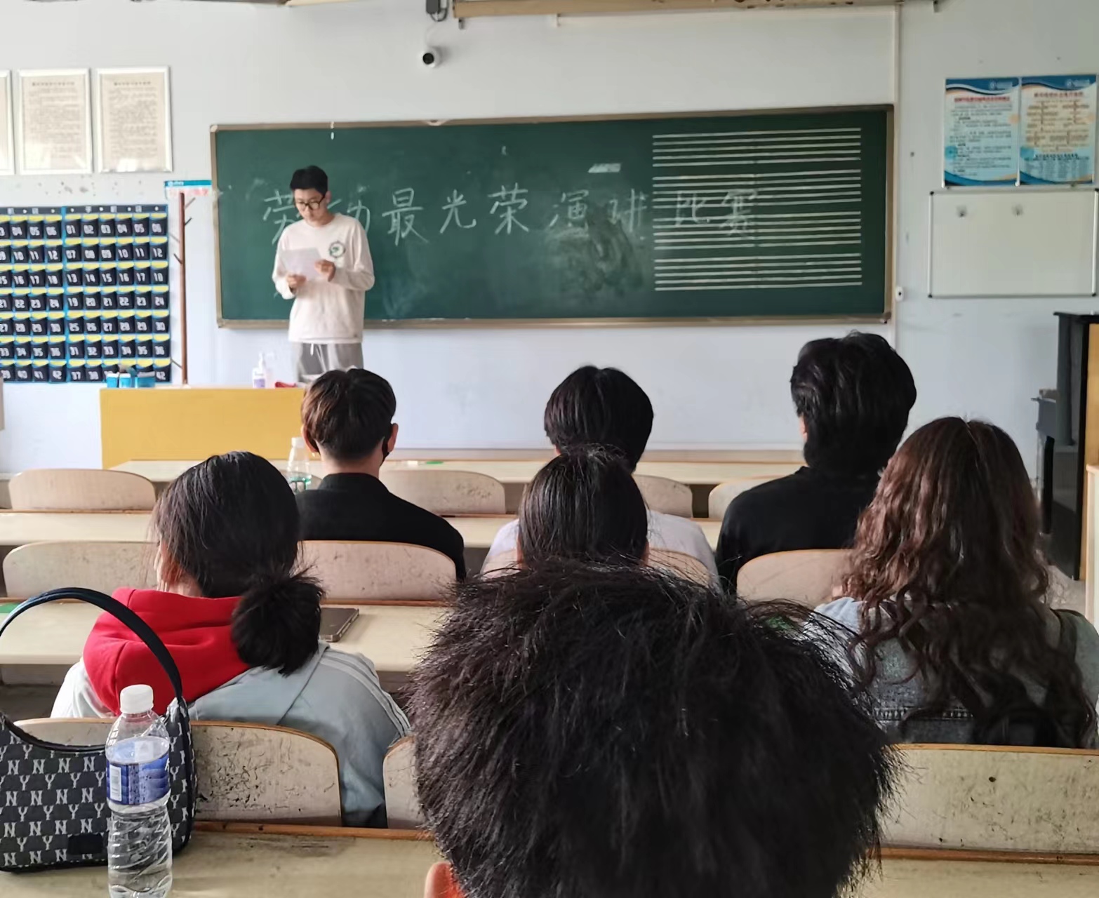 为弘扬“劳动最光荣”精神, 引导同学们在新时代坚定理想信念, 5月10日下午,太阳成集团tyc151cc在0261教室开展了“劳动最光荣”主题演讲比赛。